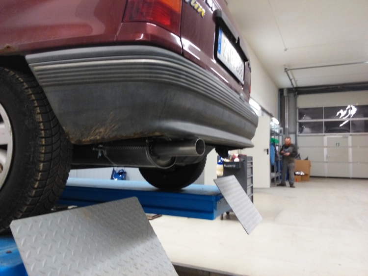 So kommt auch das Endstück etwas tiefer, es ist so direkt unter der Kunststoffstoßstange.
