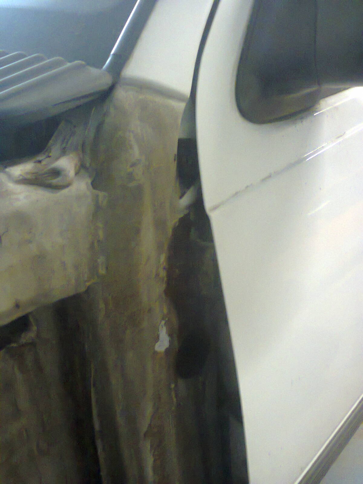 Radlauf hinten ist angegangen sowie der Schweller vorn rechts an der Türkante.