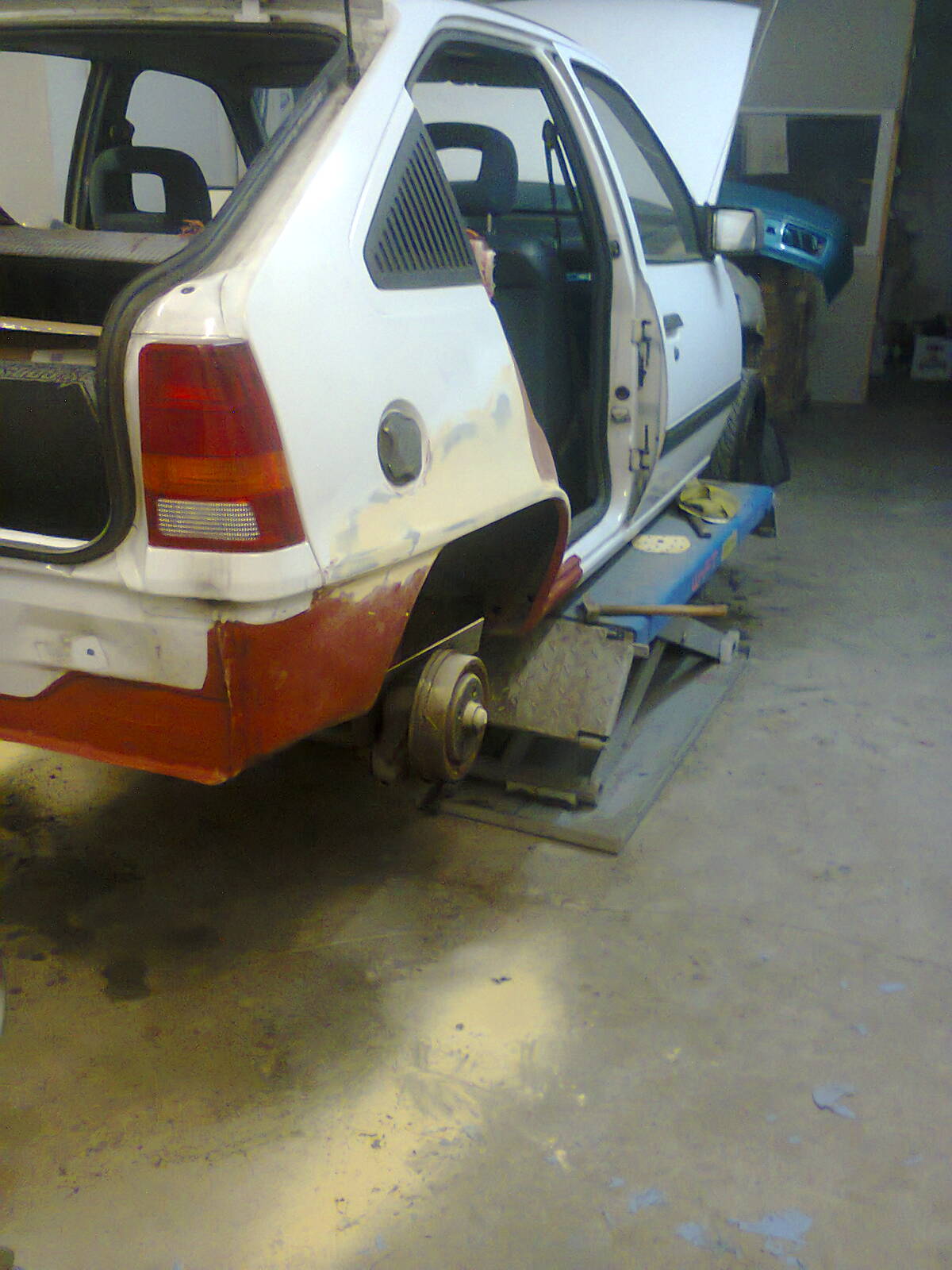 So hab bissel was geschafft. Radlauf und Innenradlauf hab ich neu eingeschweißt. Die Endspitze hinten rechts war auch gammlig, hab ich also auch gleich neu gemacht.