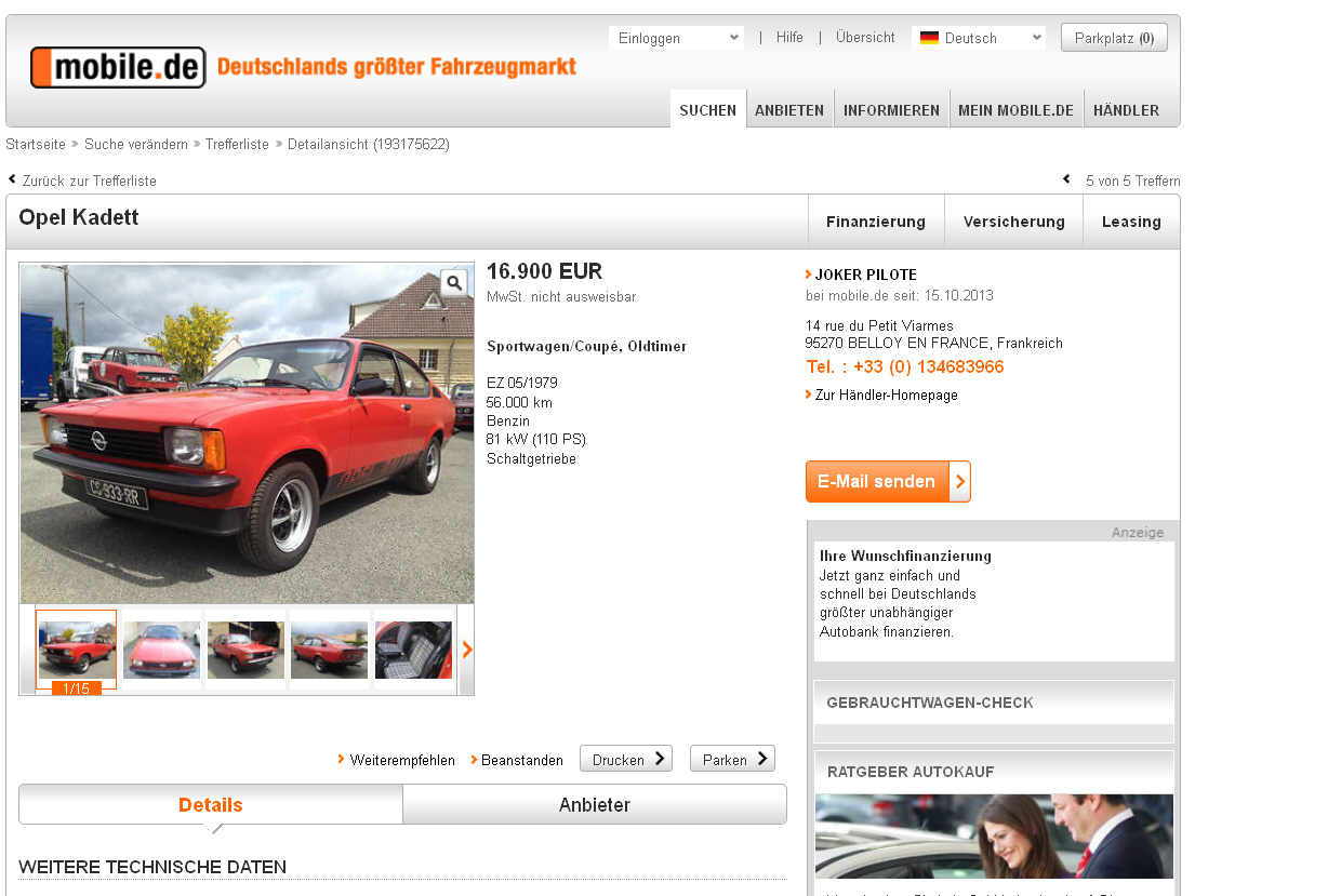 Es ist ganz klar ein Sammlerstück für Kadett-Liebhaber, der sich mit der Materie auskennen oder die etwas sehr seltenes besitzen wollen. Der Preis ist VB , aber auch als Abschreckung für Diejenigen, die dieses automobile Kulturgut für ne kleine Mark tieferlegen und nen V6 reinbasteln wollen. Abgesehen davon erzielen selbst schröbbeligste Golf 1 Massenware gleichen Baujahres wesentlich höhere Verkaufspreise. ( Bitte keine Diskussionen off topic an dieser Stelle )