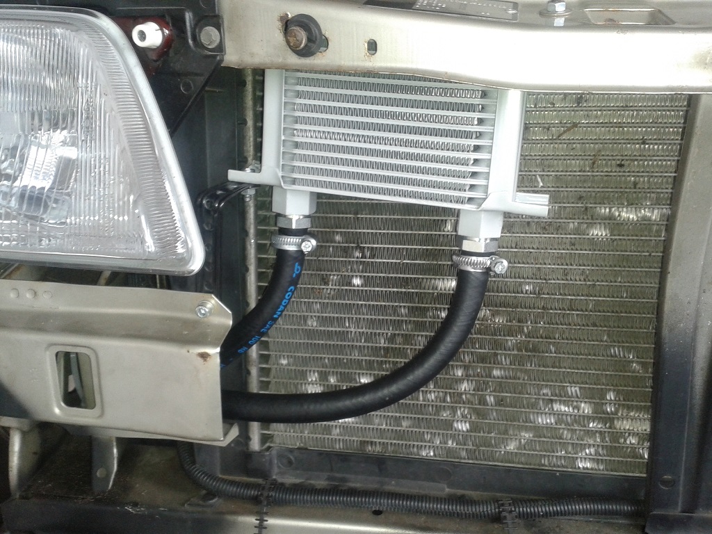 Habe einen Setrab 16reihiger Ölkühler drin, genauere Facts weiß ich grad nicht mehr. Habe die originalen alten Anschlüsse verwendet und einfach neue Schläuche drauf pressen lassen.