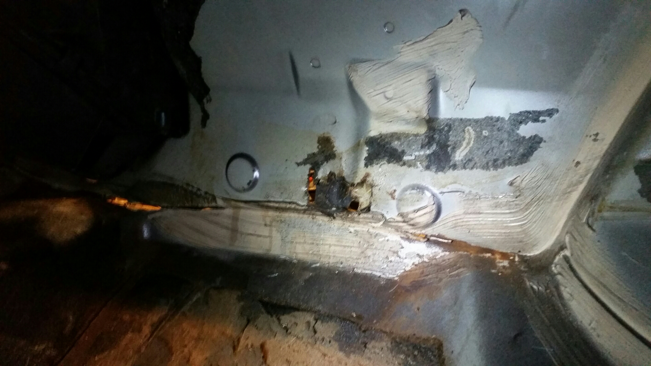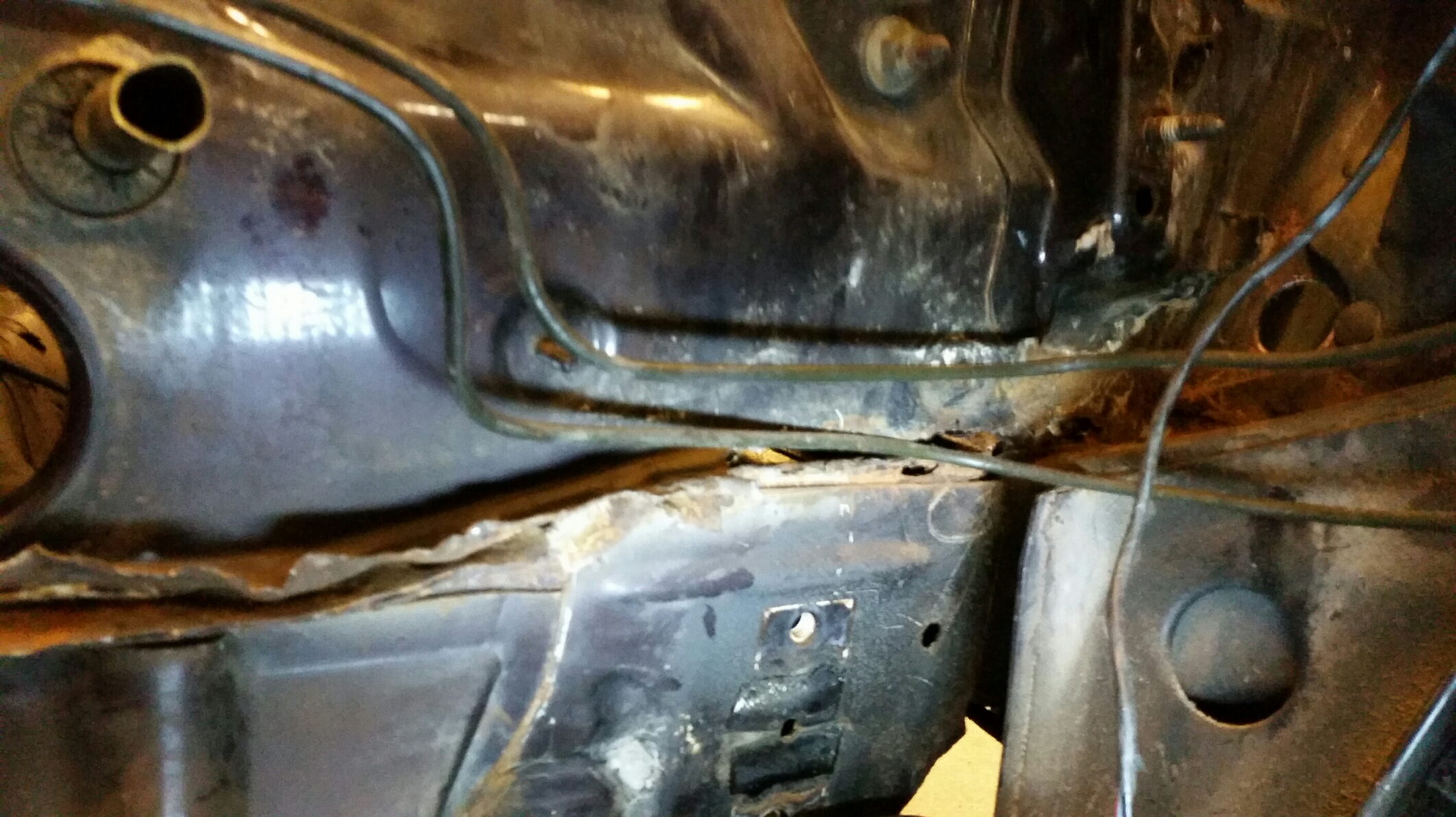 im Fußraum habe ich sonst schon alles inspiziert. Ist nur auf der Fahrerseite ein Loch im oberem Blech (ssieht man auf dem einen Foto auch).