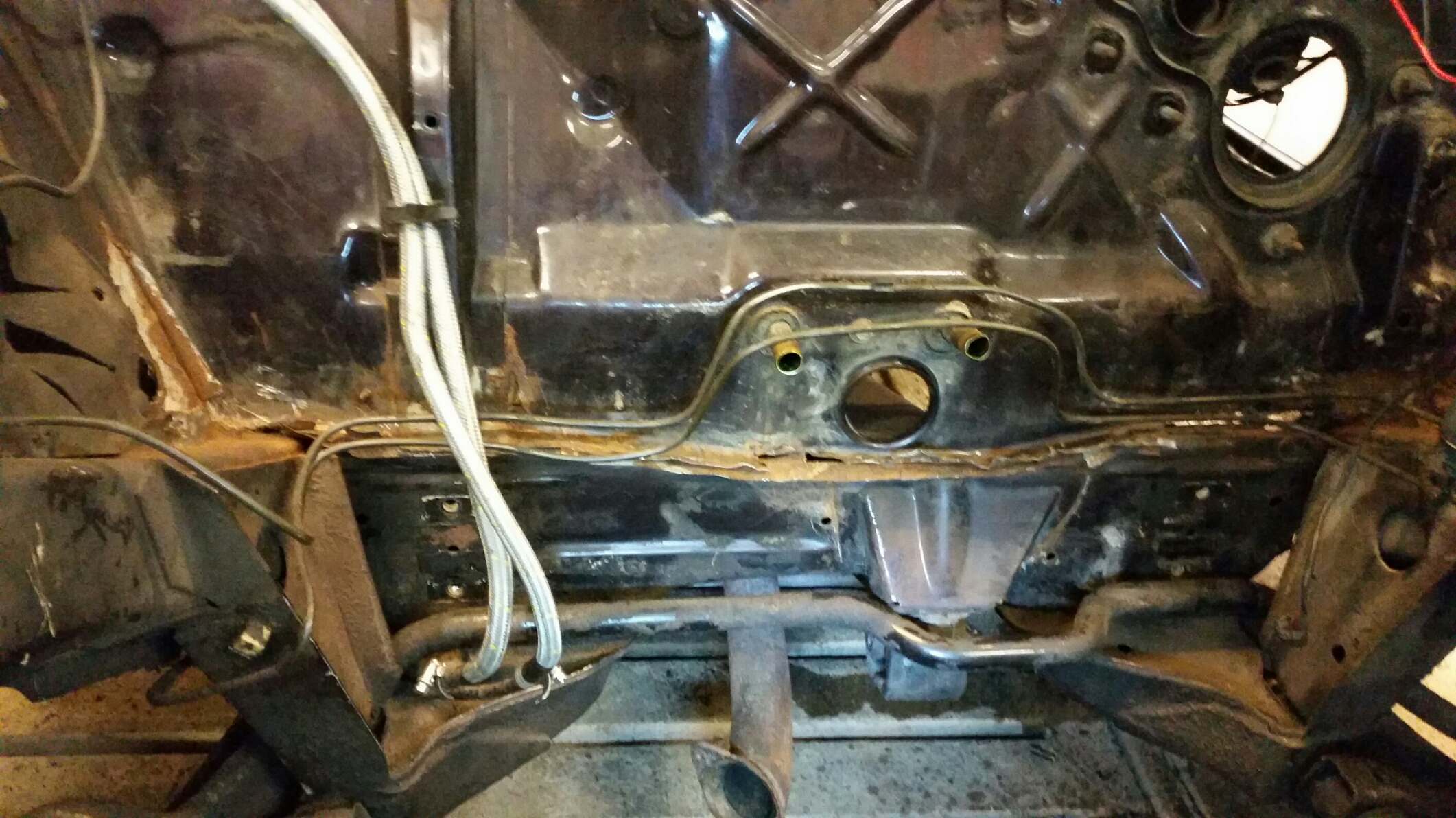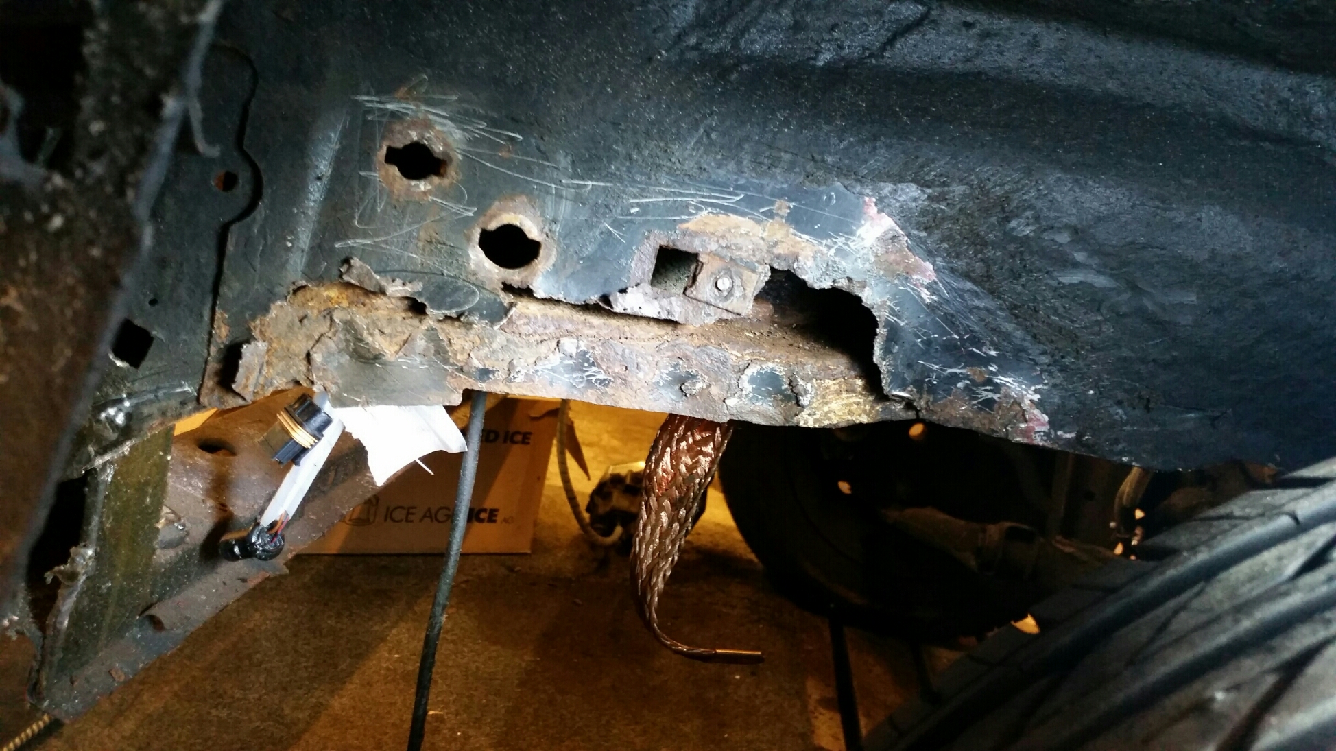 im Fußraum habe ich sonst schon alles inspiziert. Ist nur auf der Fahrerseite ein Loch im oberem Blech (ssieht man auf dem einen Foto auch).
