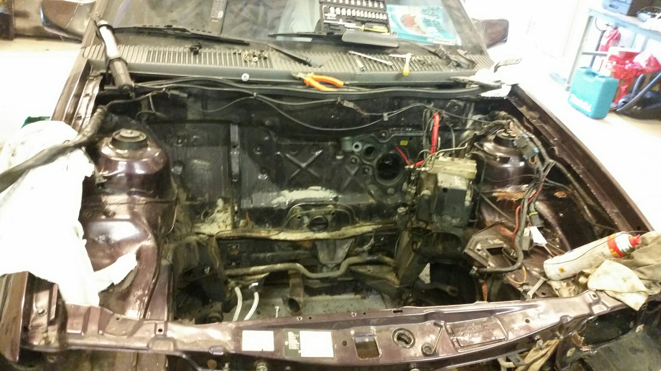 Ansonsten habe ich den Motorraum angefangen zu entkernen, sowie mich auf der Suche nach Rost gemacht.