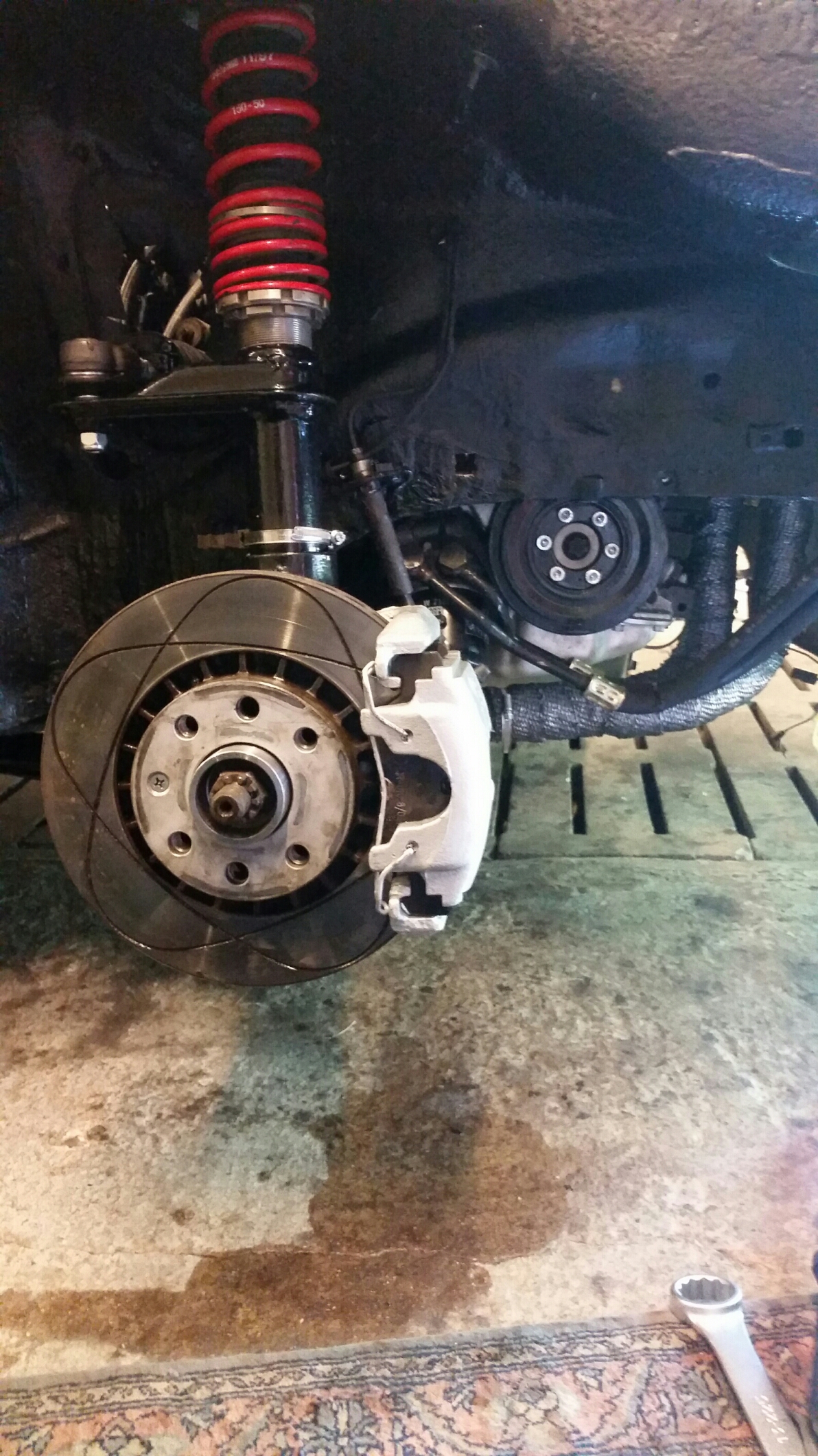 Im Anschluss habe ich noch angefangen die Querlenker, Federbeine und Spurstangenköpfe zu wechseln. Die Schrauben zur Befestigung der Gewindestange an der Lenkstange sind natürlich abgerissen, muss ich erstmal rausbohren.