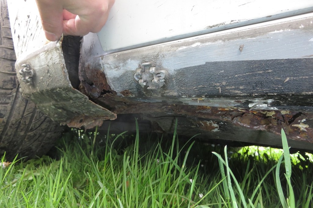 Der letzte TÜV ist im Frühjahr 2014 abgelaufen. Seit dem steht er ja in der Ecke. Der letzte TÜV-Prüfer hatte es 2012 nicht festgestellt mit dem Rost. Damals wars ja auch noch nicht so sichtbar bzw. hat man ja die praktischen GSI-Abdeckungen davor. Als er stand hab ich die Substanz mal näher betrachtet, die Leisten abgemacht und der Rost nahm kein Ende. Also keine Kosmetik ;)