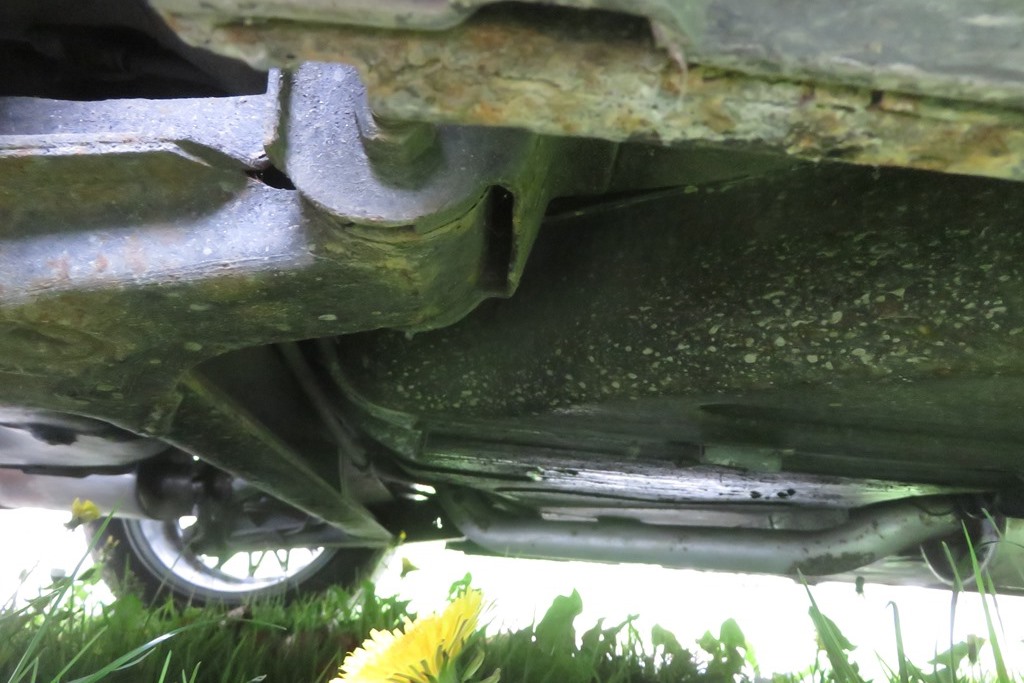 Hast Du Dir auch schon links das Bodenblech im Bereich des Querträgers angesehen, sieht aus als wäre es hier schon herausgerissen.