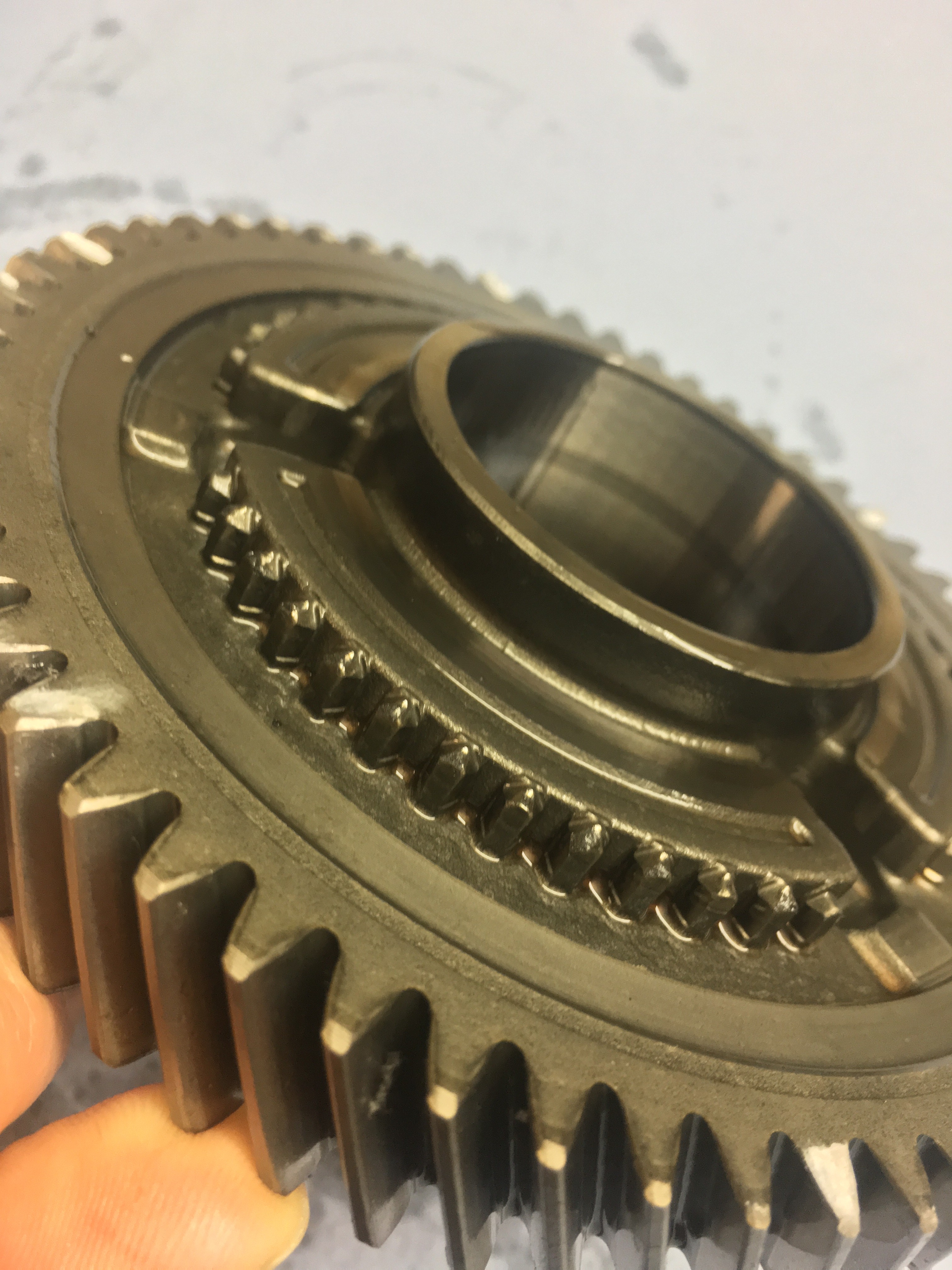 Wie man deutlich sehen kann sind der 3&4 gang neu gekommen (die hellen) zudem ist der syncronkörper vom 2.Gang sowie 5 Lager erneuert wurden ... die Lagervorspannung war um 1/10 zu fest ... typischs m32 Drama