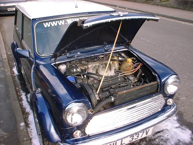 Das Problem ist, daß man den Opelmotor in Deutschland nicht getüvt kriegt. Der ist zu schwer für die Vorderachse. Die Engländer habens da etwas einfacher, siehe hier: http://www.16vminiclub.com/gallery/Was in Deutschland möglich ist, und davon gibts auch einige, das sind Minis mit Honda Motoren. Die Motoren sind leicht und haben Dampf. Bis 150 PS sind mit TÜV möglich. Vor allem haltbare PS.