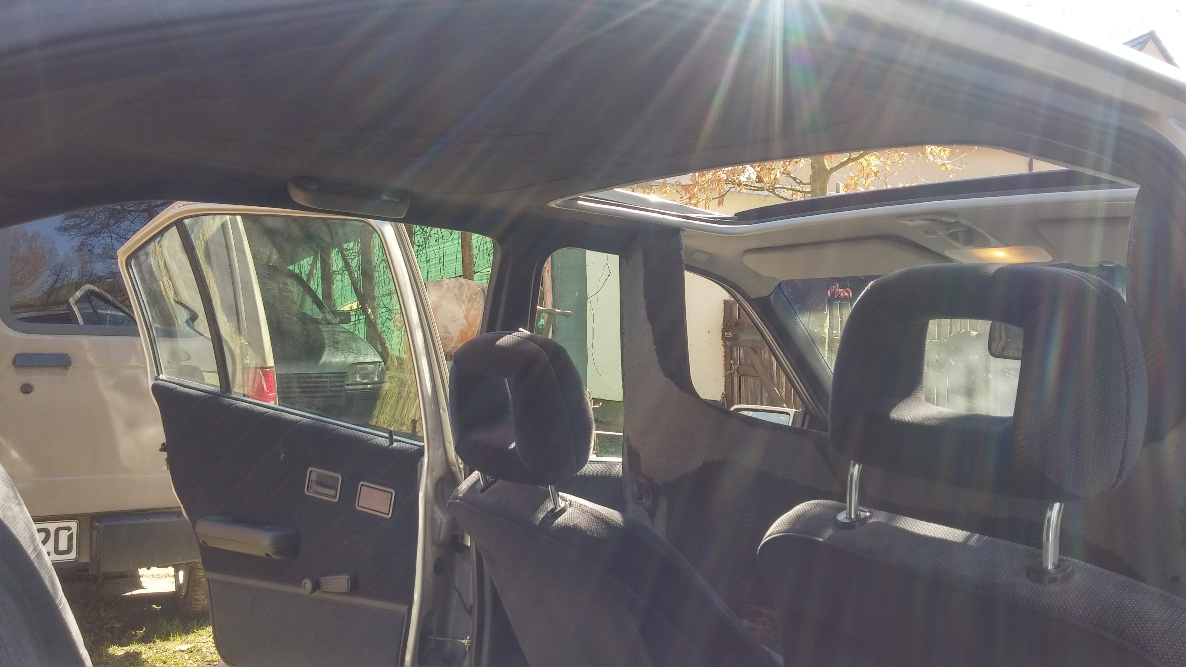 #49 Das mit dem Himmel kenn ich.. so ist es mir dieses Jahr auf dem Weg nach Oschersleben gegangen.. daheim nur ein kleines Eckchen das sich gelöst hat.. 500km später mit offenen Fenster hängt die ganze Geschichte bis zu den Kopfstützen herunter. Als erstens auf der Kartbahn schnell die Griffe und Sonnenblenden ausgebaut und den gelösten Stoff entfernt...