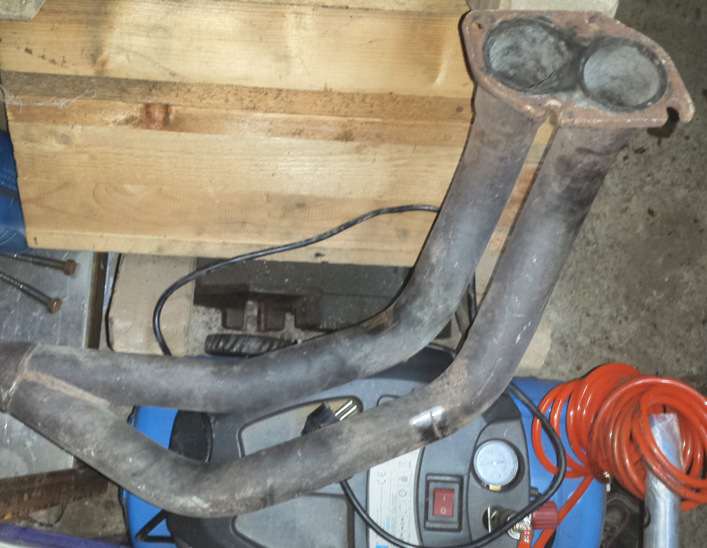 Ich hätte da erstens einen 2-flammigen Abgaskrümmer mit Lambdasonde oben und das dazugehörige Hosenrohr bis unten.