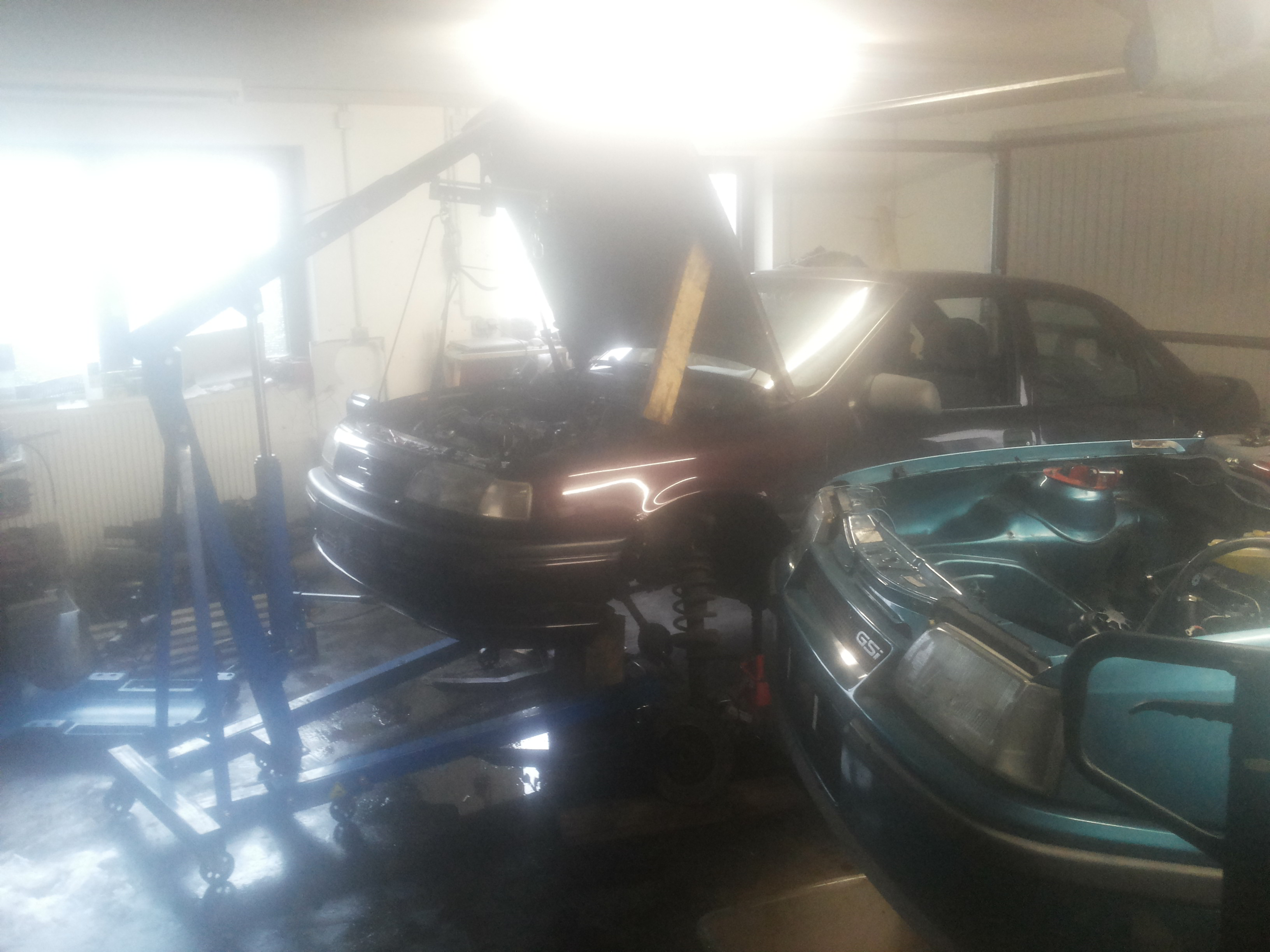 Nun kam es aber wie es kommen musste und der nach nur 3 Monaten war mir der Motor schon zu schwach auf der Brust. Da war klar das der nächst größere Motor her musste. Also auf C20xe umgebaut. Den ganzen Winter geschraubt; 16V Bleche eingeschweißt; Astra GSI 16V HA eingebaut; Abs ausgebaut; Motor komplett revidiert; Mäusekino eingebaut; FMS Gruppe A ab Kat inkl. Kat aus nem Turbo-Calibra und viele Kleinigkeite erledigt.