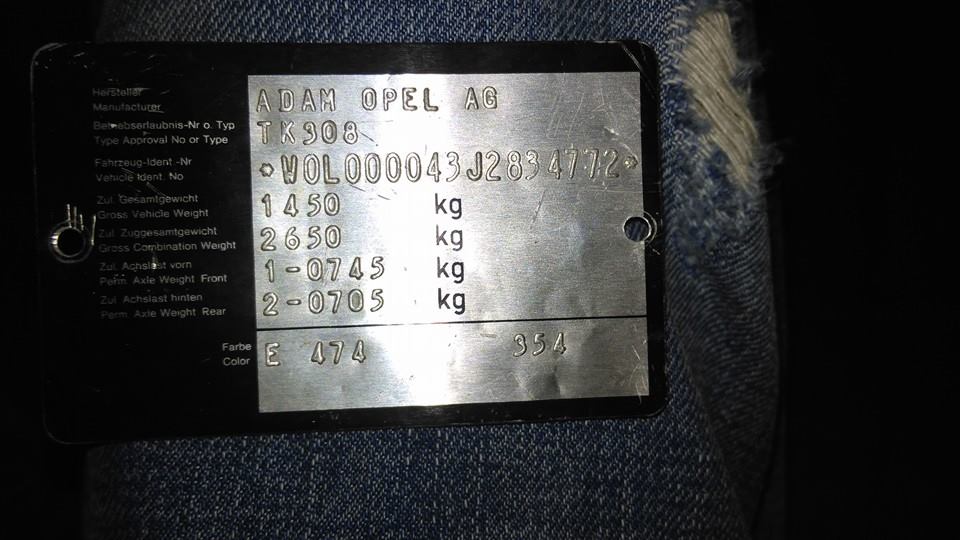 Nein das Typenschild war schon ab. Laut dem Verkäufer hat er den Kadett so gekauft.