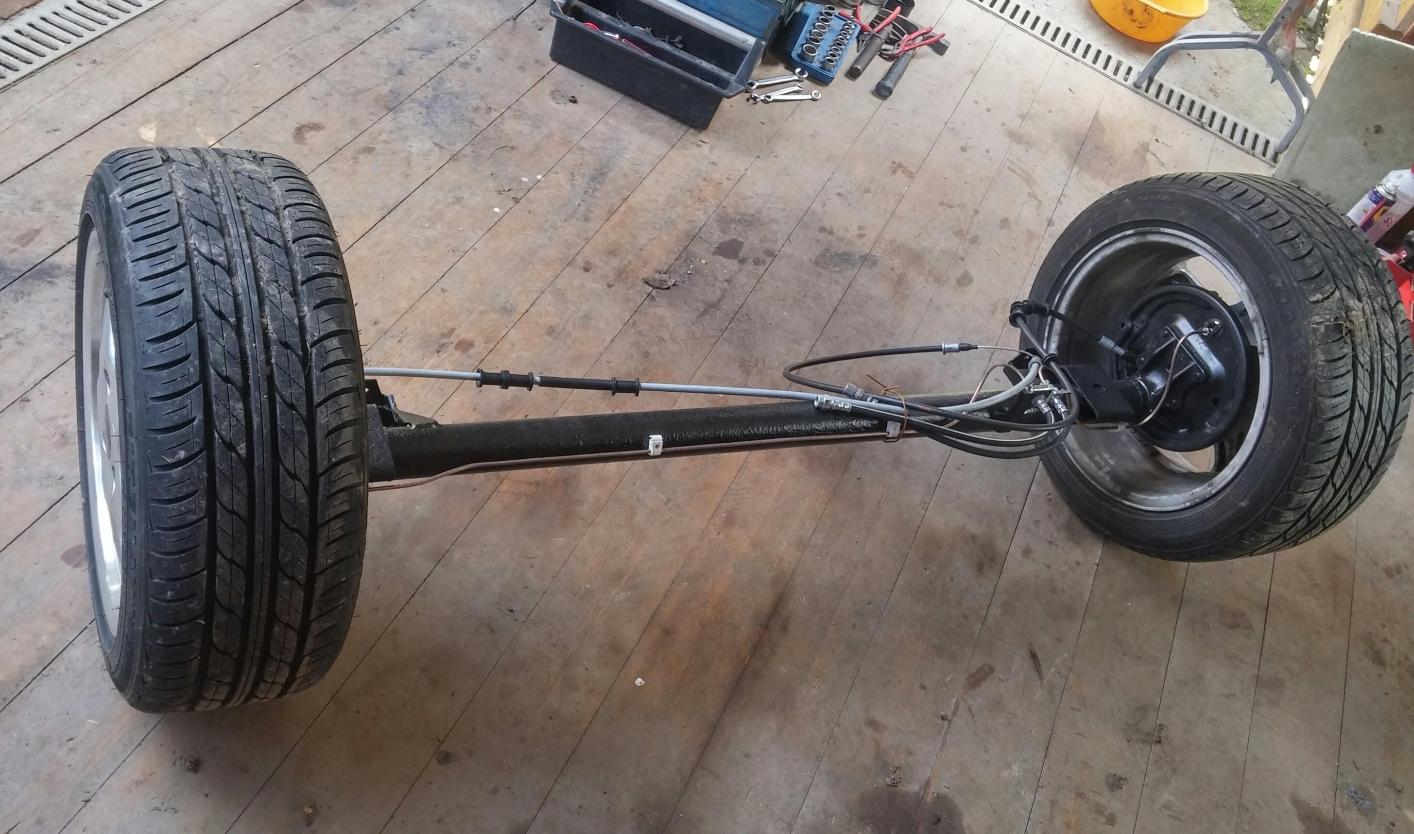 . Er hat jetzt den Härtetest gut überstanden und darf wieder auf eigenen Füßen stehen...Habe die Hinterachse für den Einbau vorbereitet. Komplett entrostet, lackiert und neue Bremsen sowie Leitungen verbaut