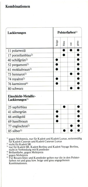 Hab mal ein bißchen in meinem Prospekte-Odner gewühlt, der u.a. 5 verschiedene Farb-Prospekte vom Kadett-D beinhaltet