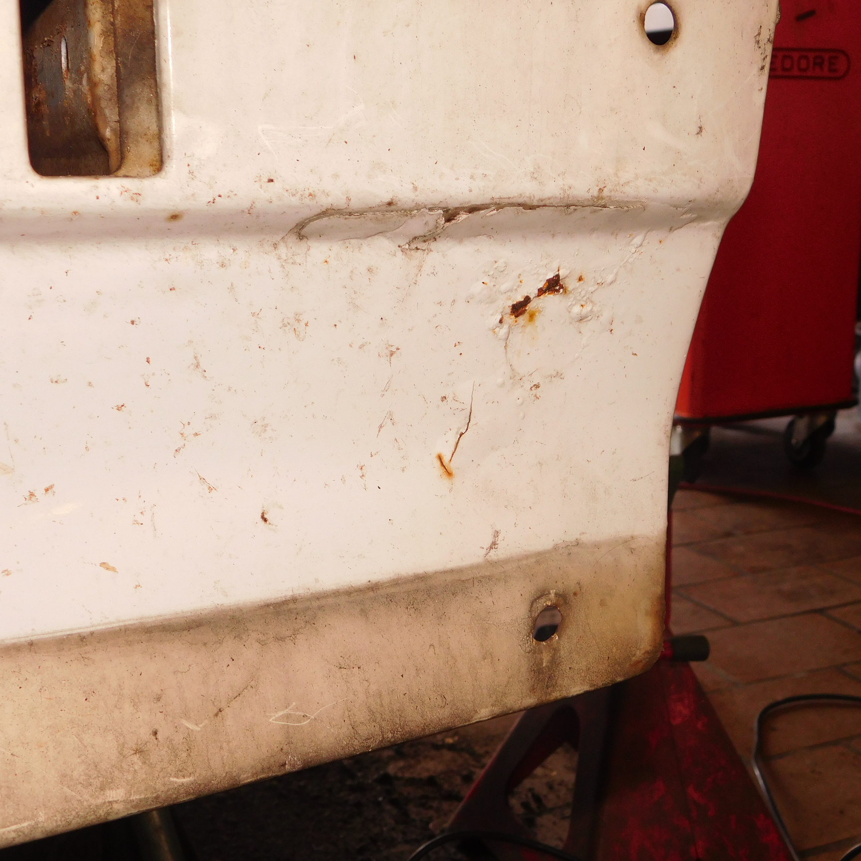 Die Schürze zeigt zwar Rostblasen, ist aber nicht durch und durchaus weiter zu verwenden.