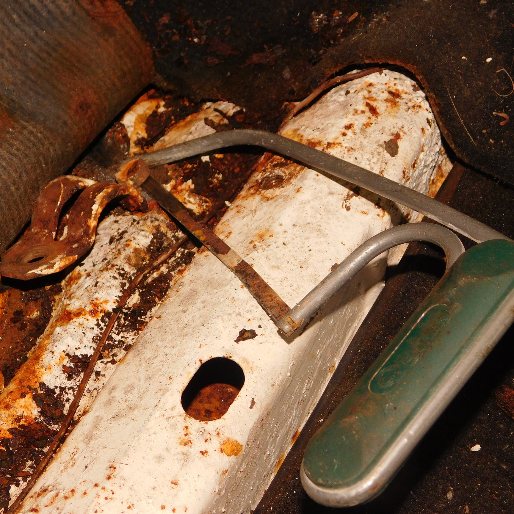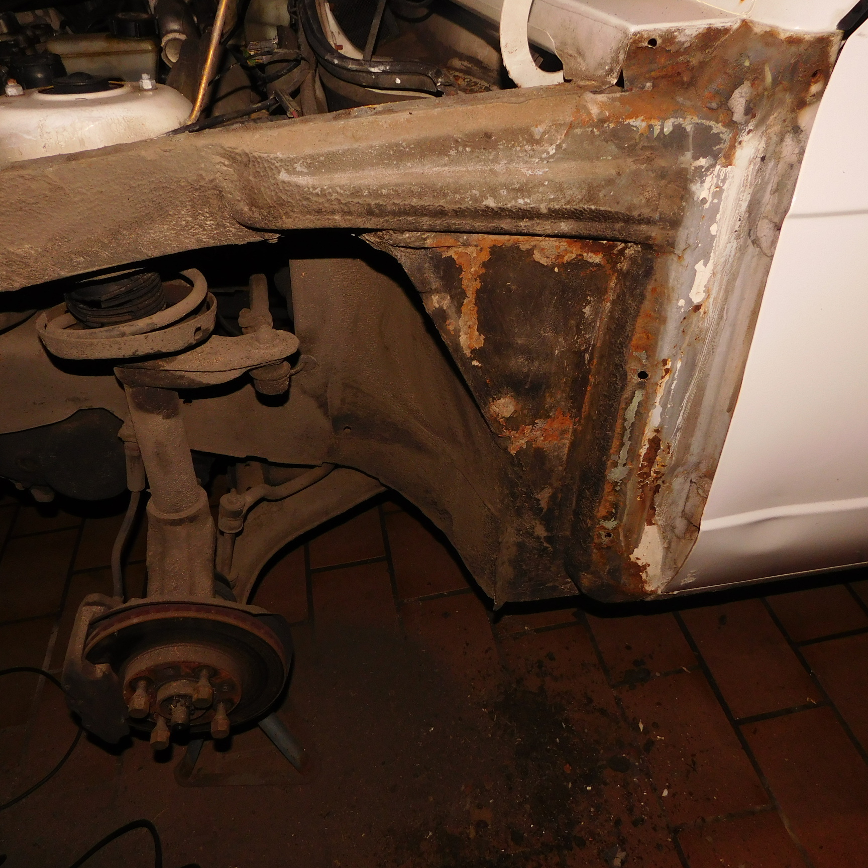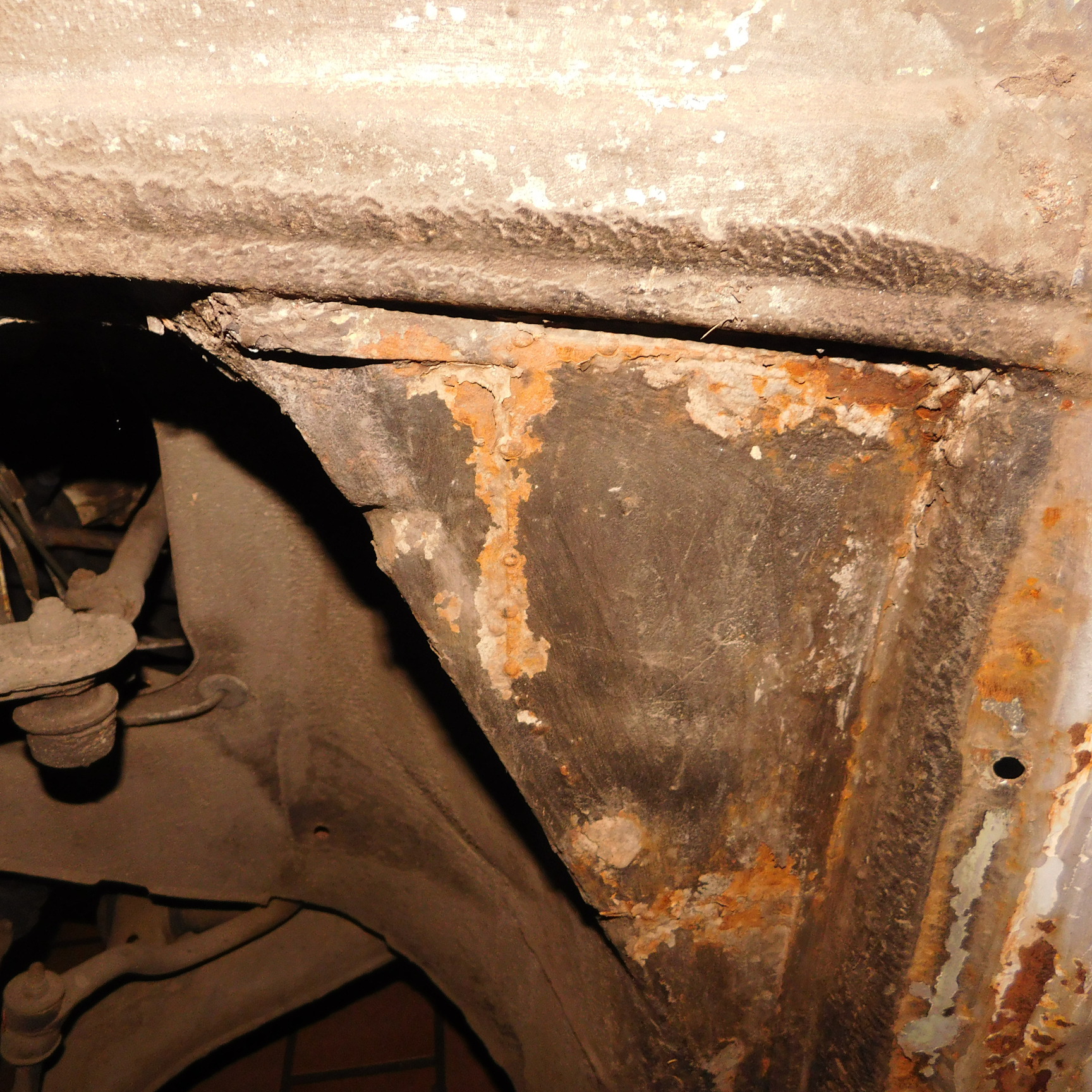 Der Bereich hinter den Kotis zeigt sich auch brauchbar. Rost ist da, aber nicht wirklich tief.