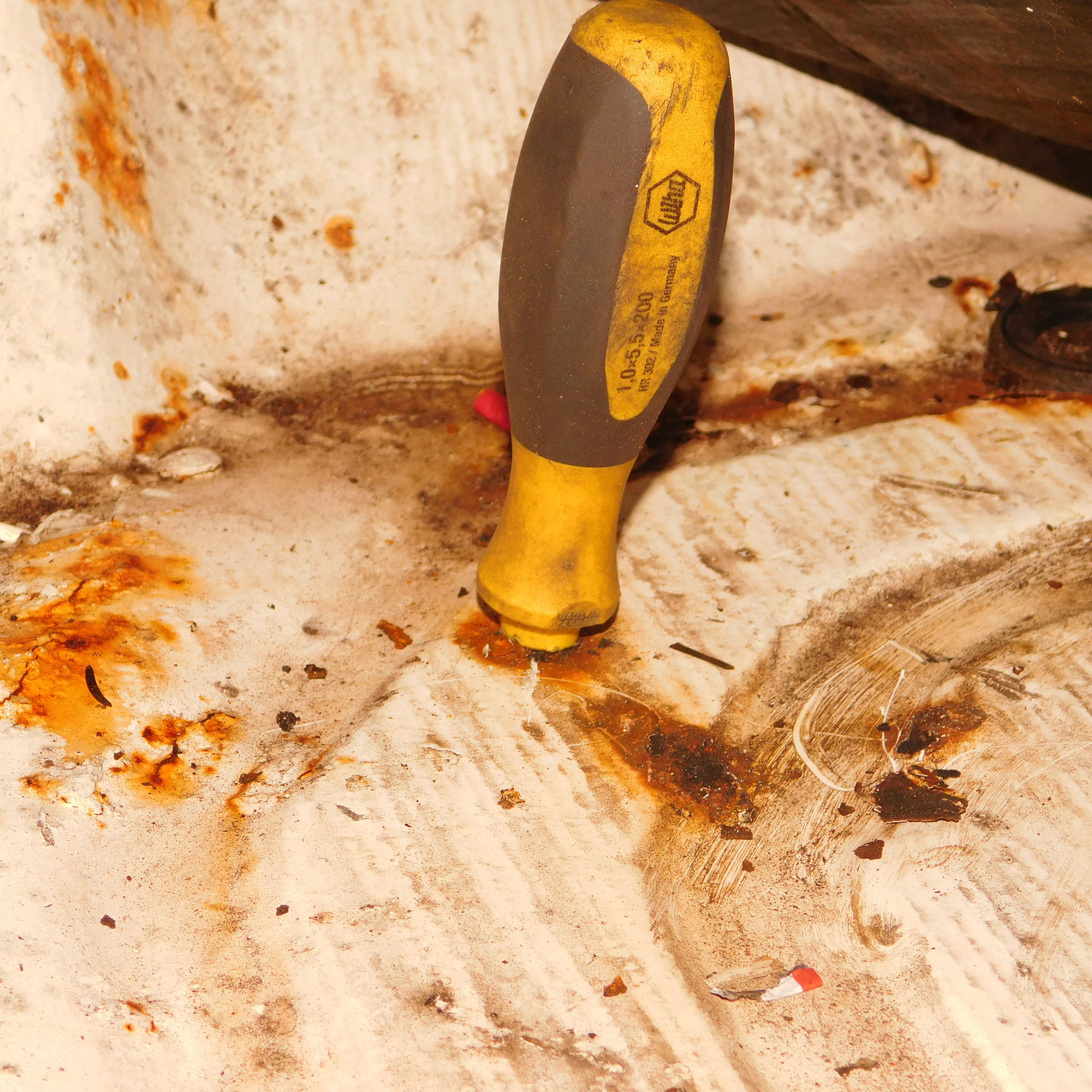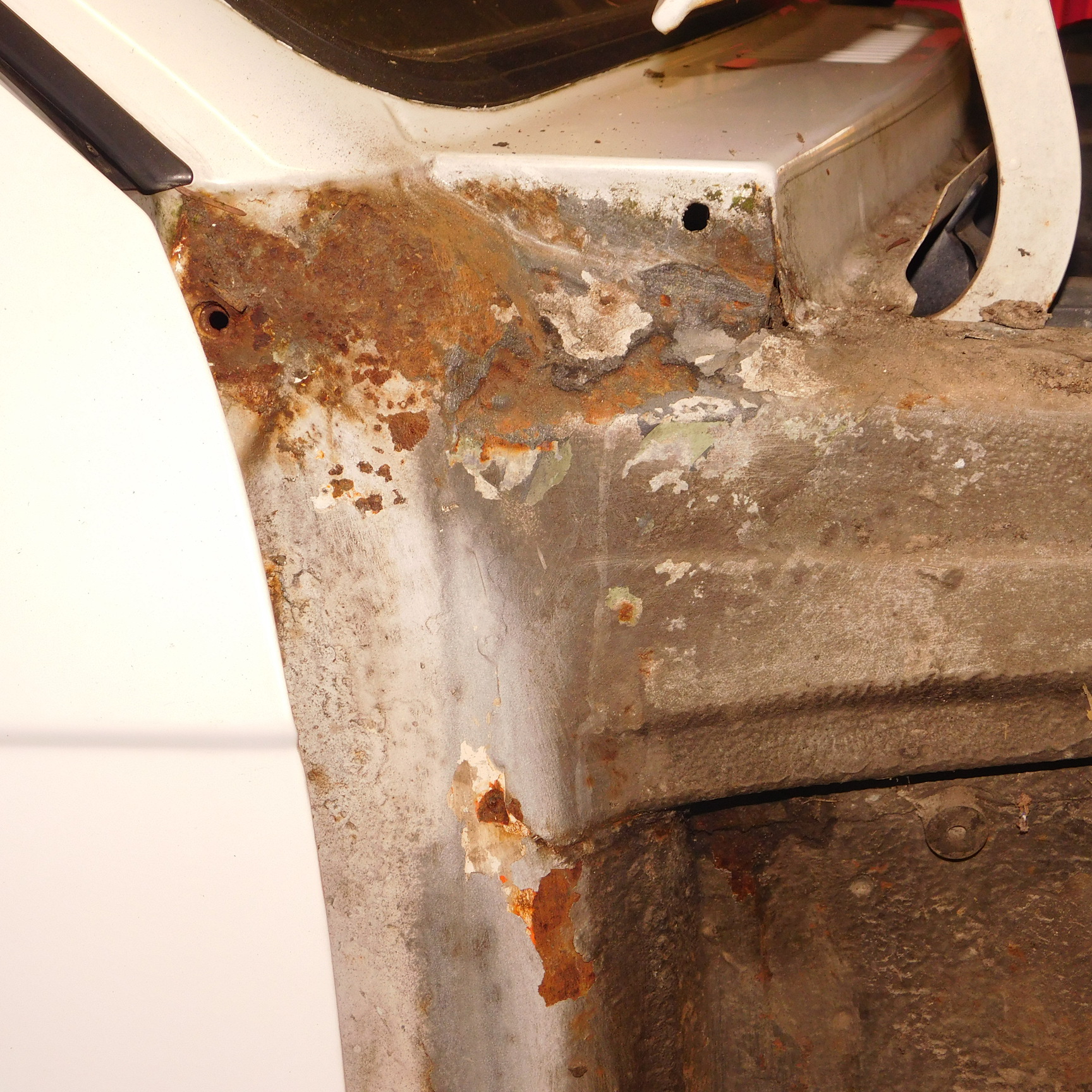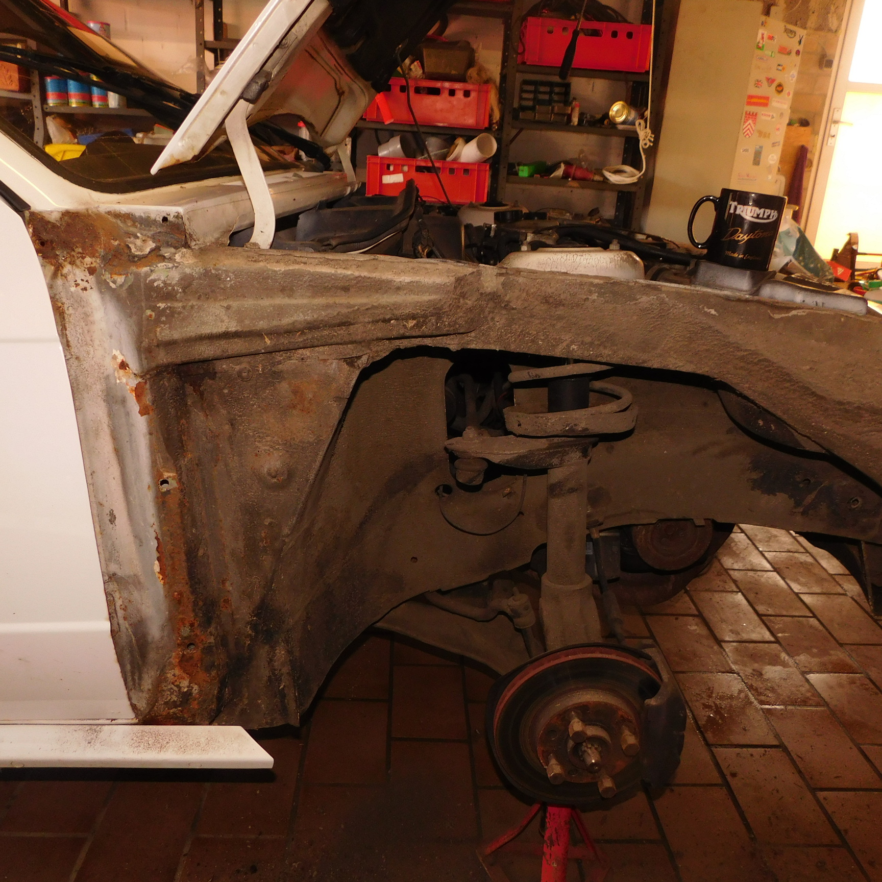 Der Bereich hinter den Kotis zeigt sich auch brauchbar. Rost ist da, aber nicht wirklich tief.