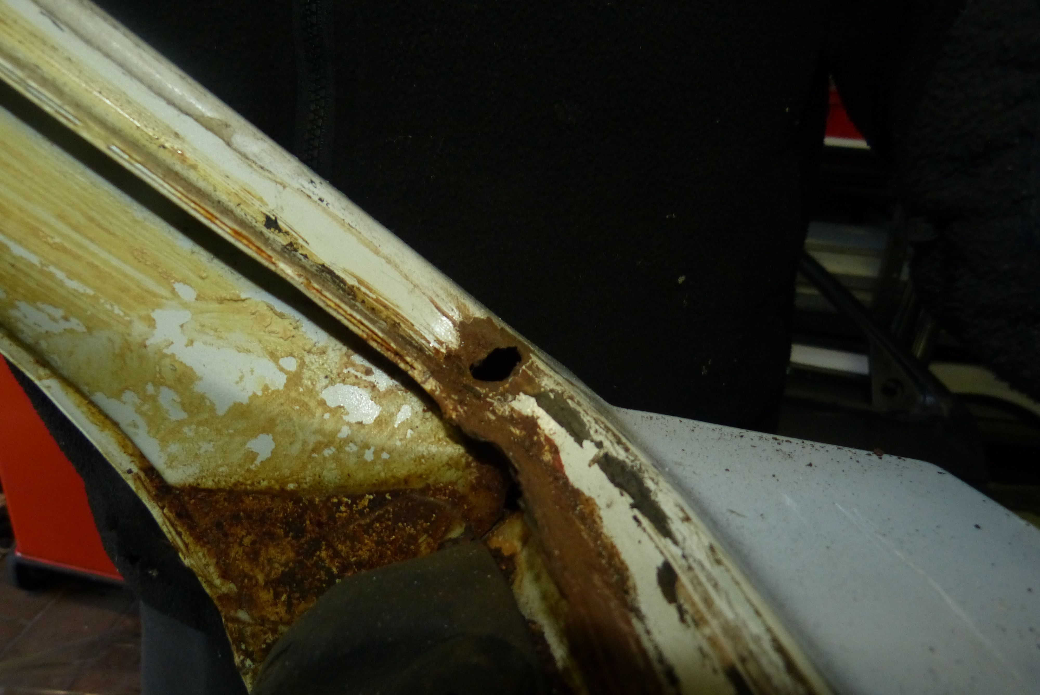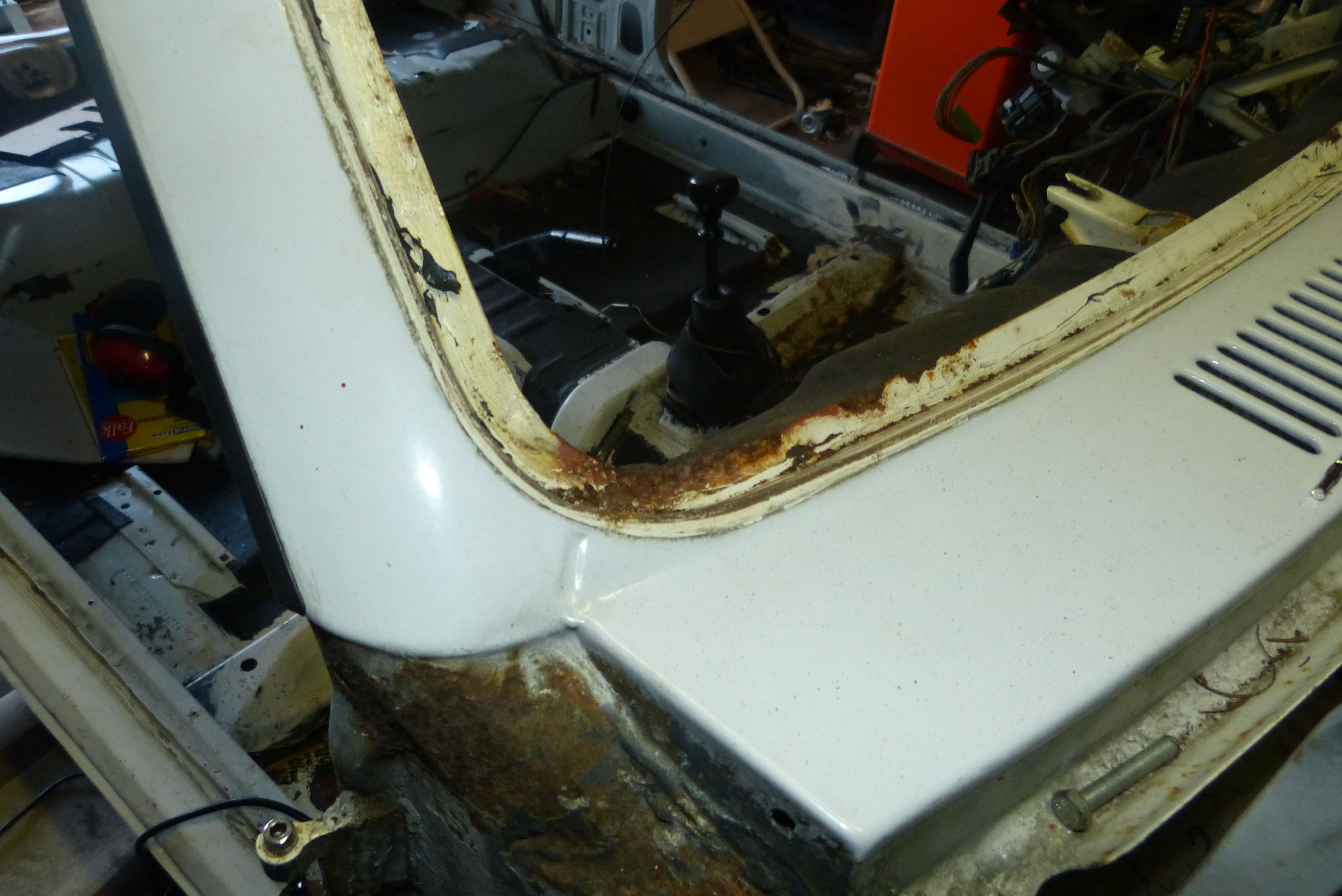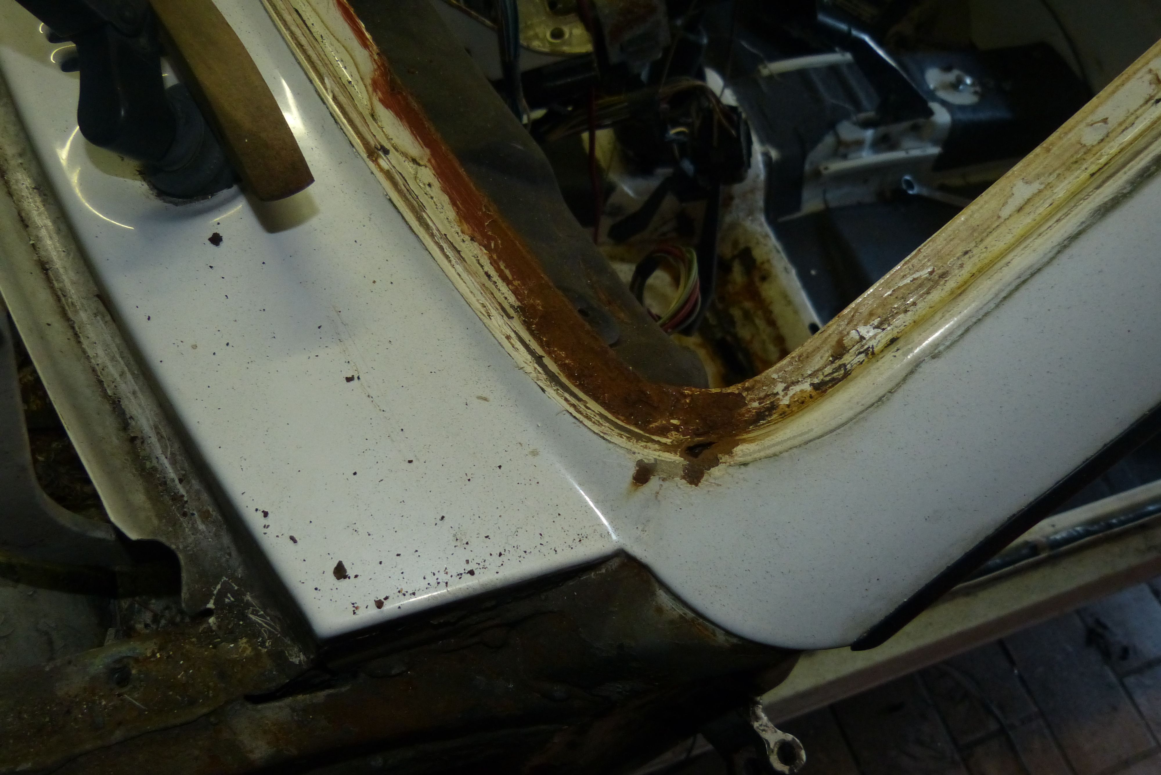 Auffallend ist, dass innen eine Menge "alter" Rost ist, der muss längere Zeit innen feucht gewesen sein. Keine Schraube ist blank, alles korrodiert. Leider auch da, wo Bleche übereinander liegen.