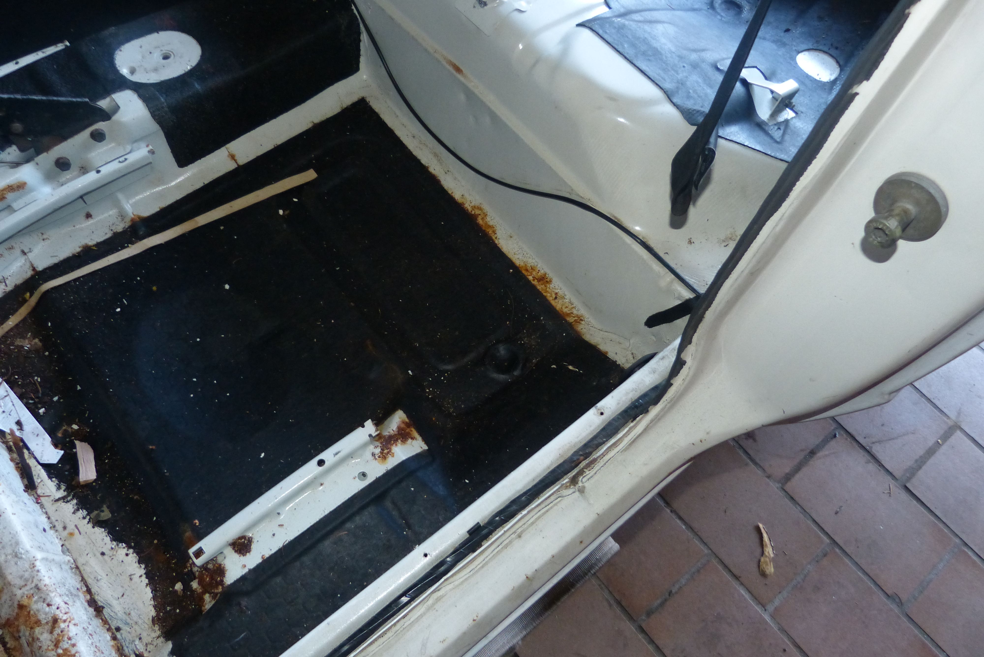 Heute hab ich die Klappe ausgebaut. Dann Rest Teppich und Seitenverkleidungen abgenommen, Armaturenbrett ausgebaut...