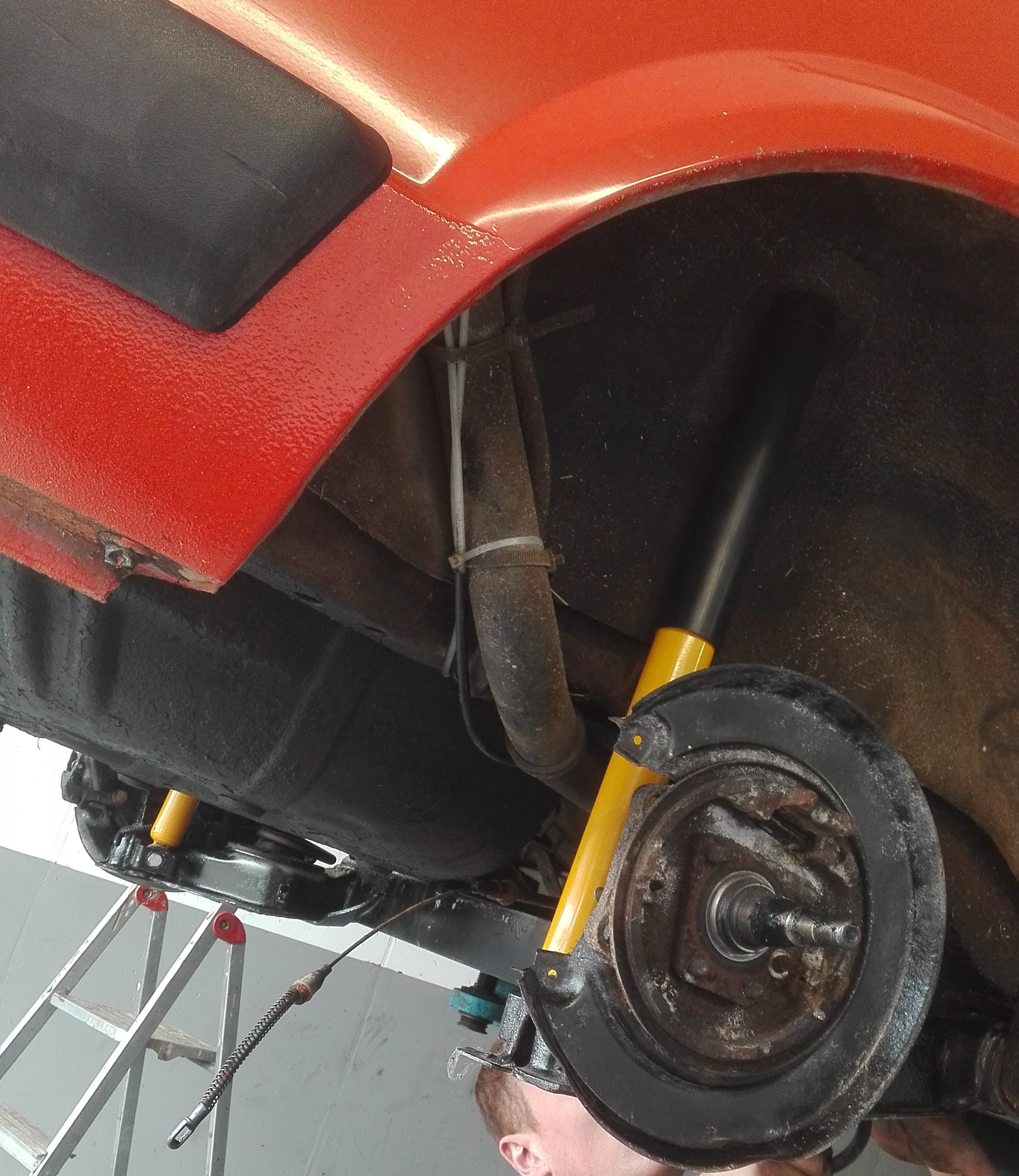 Auf jedenfall muss man generell bei einer Kadett-E bzw. Astra-F Achse das Handbremsseil vom 16V abändern oder sich Adapter bauen, da die Längen der Hülsen nicht ganz passen.