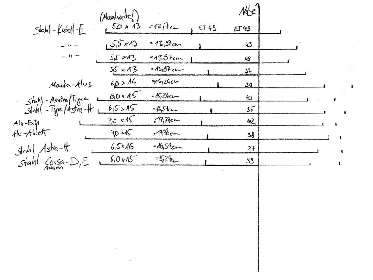 Vergleich - Felgenmaße, ist das so korrekt?..