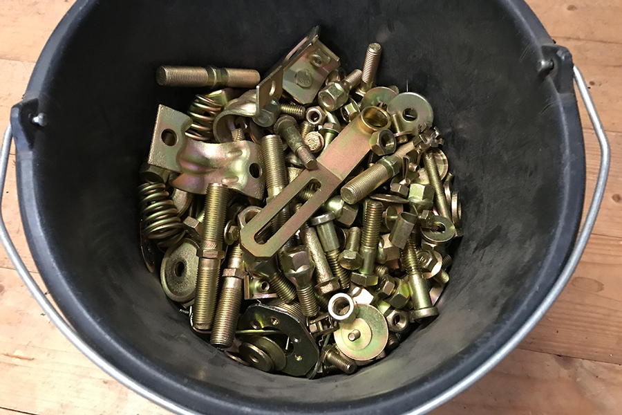 Mehrere Eimer Schrauben und Kleinteile habe ich sandstrahlen und chromatieren lassen.