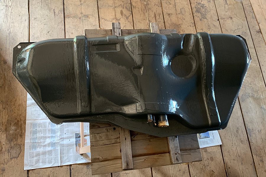 Während der Tank nach dem Abwaschen getrocknet ist, habe ich den Tankgeber und das Ölkühlerthermostat gereinigt und anschließend den Anlasser und die Servopumpe lackiert.