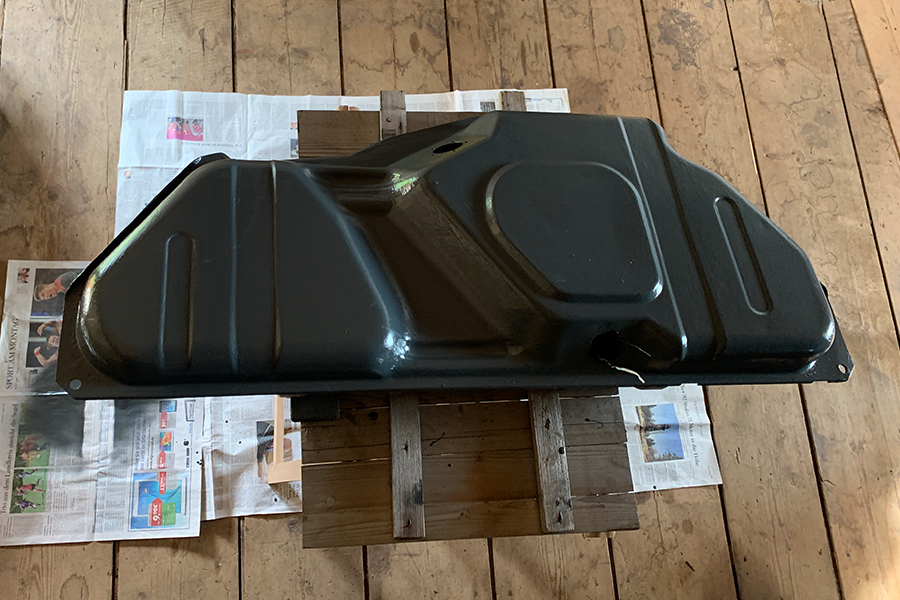 Jedenfalls sieht wenigstens der Tank gut aus. Habe heute die Unterseite gestrichen.