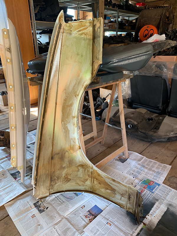 Ich lass die Kotflügel jetzt gern mal 48 Stunden stehen und dann werden sie innen schön mit Brantho Korrux gestrichen.