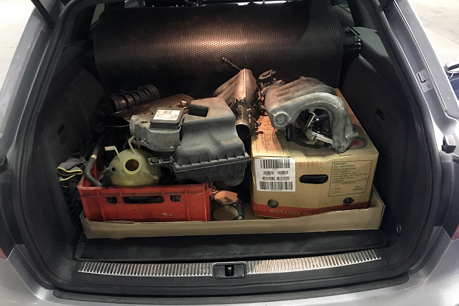 Mitgebracht habe ich unter anderem einen Zylinderkopf vom C20NE mit Nockenwelle und ein paar Anbauteilen.