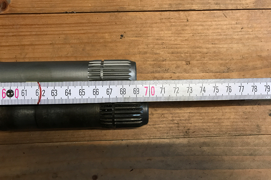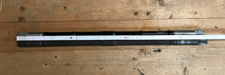 Und da ich so schön beim Messen war, habe ich nochmal die Längen der kompletten Antriebswellen gemessen, die ich vorliegen habe. Gemessen habe ich immer von den Anlagepunkten an der Radnabe und am Getriebe.