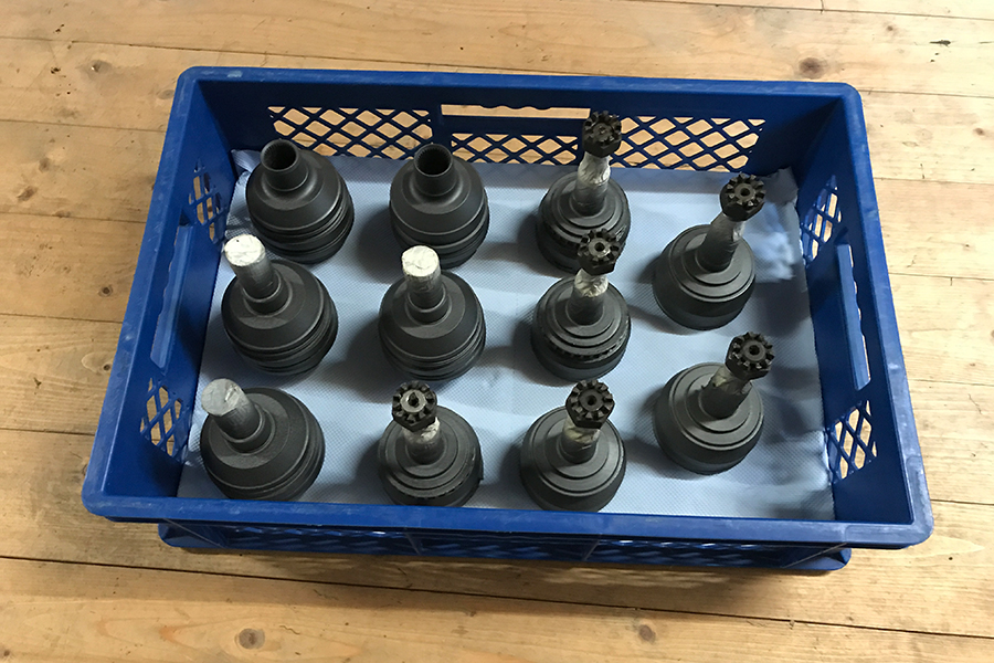 Eigentlich wollte ich am Wochenende nur die Antriebswellen zusammensetzen, aber dann kam ich mal wieder vom Einen ins Andere. Das Ergebnis ist, dass ich viele Teile im Lager gereinigt, sortiert, beschriftet und nach Fahrzeugen geordnet gelagert habe.