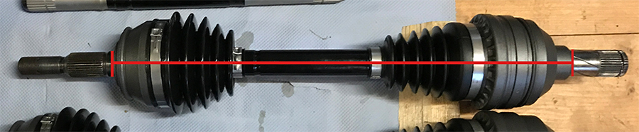 Und da ich so schön beim Messen war, habe ich nochmal die Längen der kompletten Antriebswellen gemessen, die ich vorliegen habe. Gemessen habe ich immer von den Anlagepunkten an der Radnabe und am Getriebe.