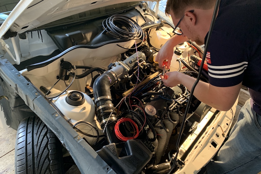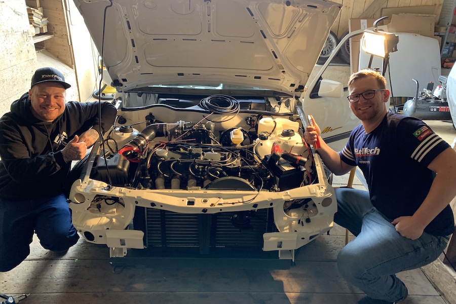 Und dann war es soweit. Ich hatte Besuch von Leonardo aus Brasilien. Er hat mir die freiprogrammierbare FuelTech FT450 Steuerung verkabelt und wir haben noch die restliche Motorelektrik fertig gemacht. Mit der FuelTech Steuerung kann man angeblich auch auf den Mond fliegen.
