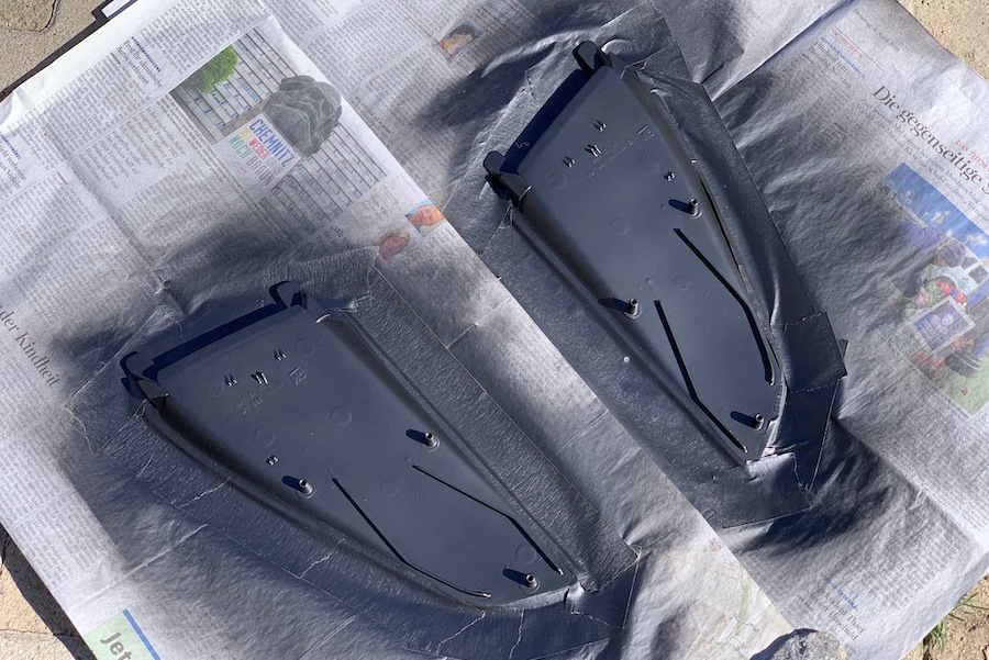 Schraube wieder festgezogen und schon gings weiter.Im Juni ging es dann mit dem Projekt GSi-Motorhaube weiter. Da die Wasserabläufe innen schwarz sind, dachte ich mir, dass ich auch die Lufthutzen innen schwarz matt lackiere.