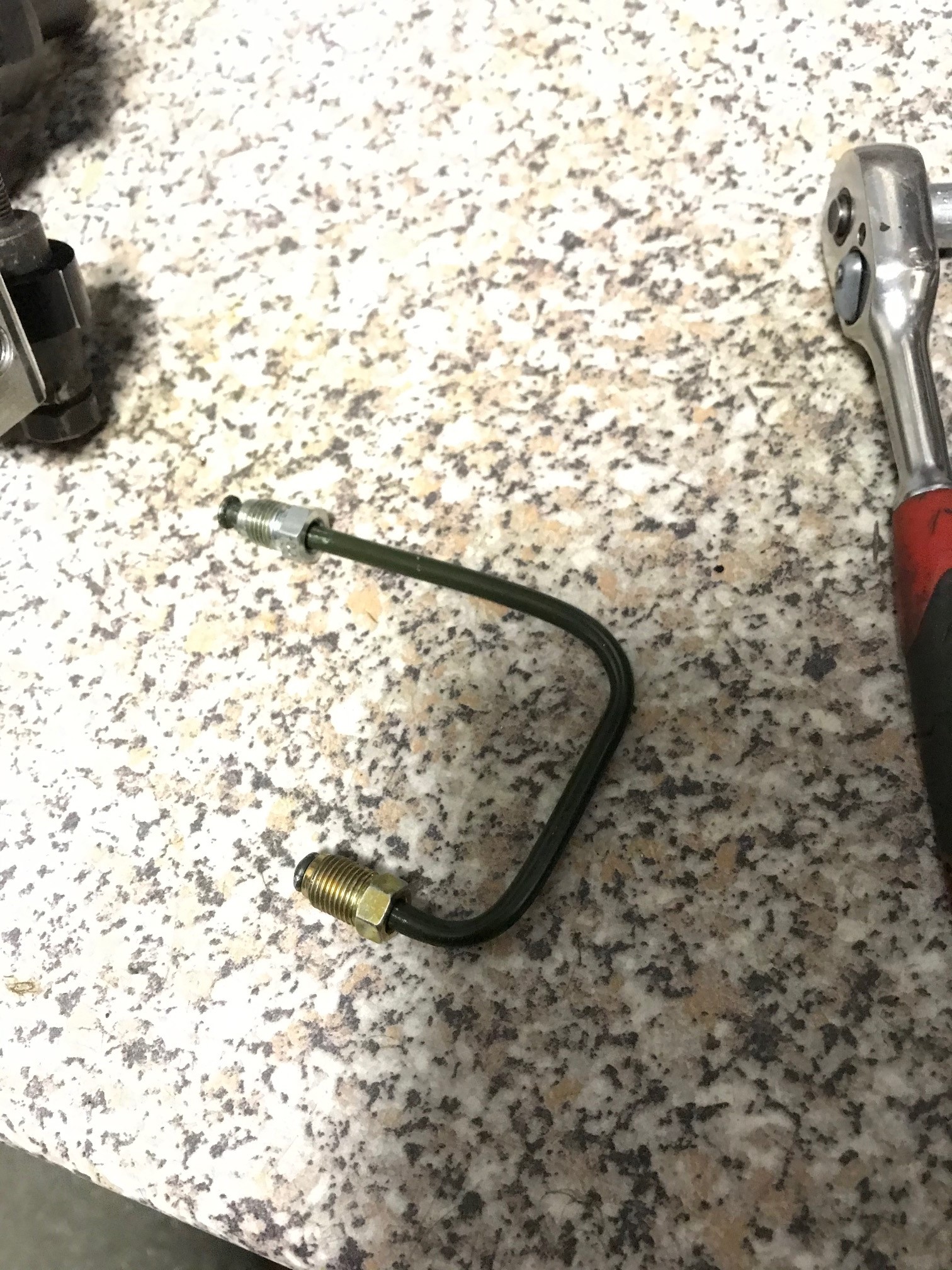 Die eine Leitung vom Verteiler zum Bremsdruckminderer ist ein Muster. Um zu gucken wie es aussieht. Warte auf die Überwurfmuttern. Wenn vorne am HBZ soweit alles passt geht es dann an die Bremsleizungen zu den Bremssätteln.
