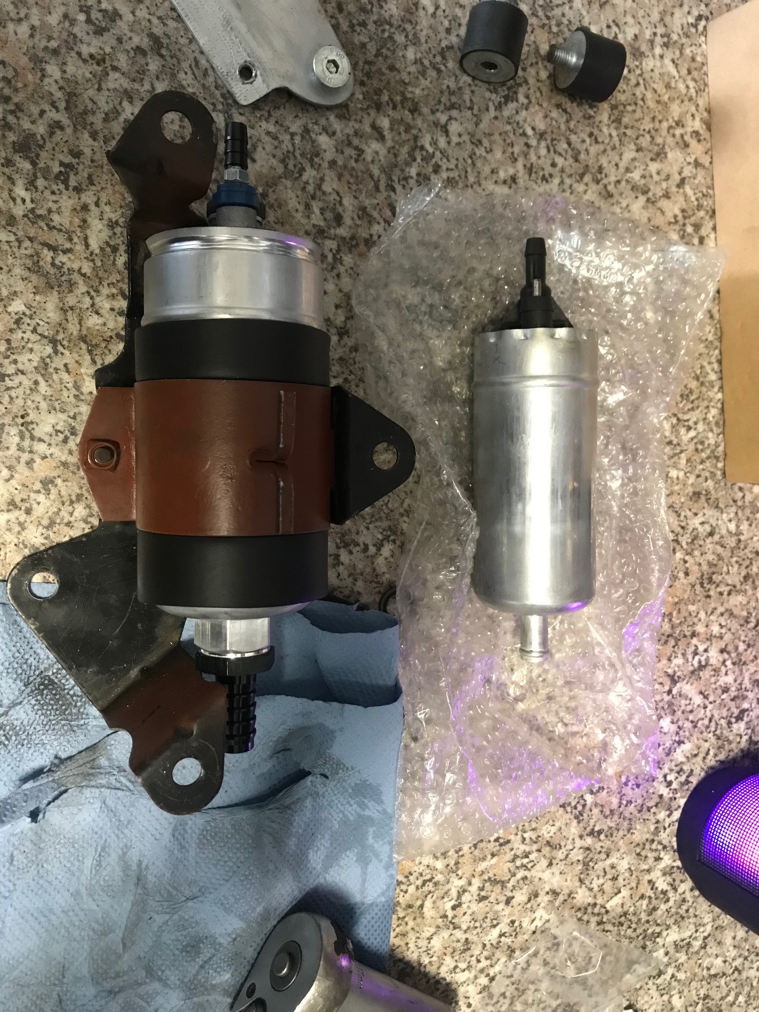 Die neue Pumpe ist deutlich größer. Musste die Benzinpumpenhalterung auch etwas bearbeiten.