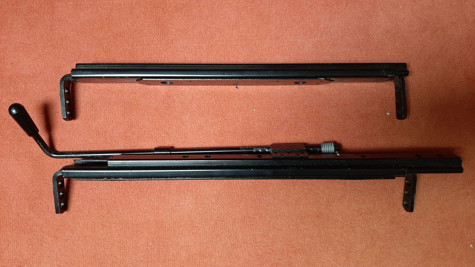 anbei ein Paar Bilder der beiden Versionen von Laufschienen die ich hier für die Recaro Sportsitze liegen habe. Die Grundabmaße sind identisch, ausschließlich die Rastung ist unterschiedlich.