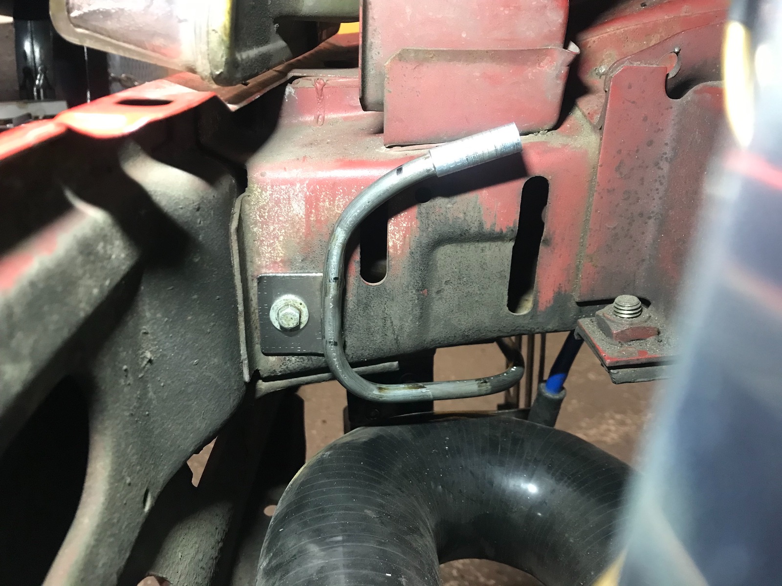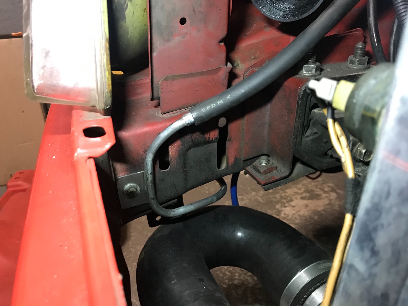 Habe das ganze eigentlich wegen dieser Leitung gemacht. Da die Riemenscheibe sonst sehr nah am Schlauch saß.
