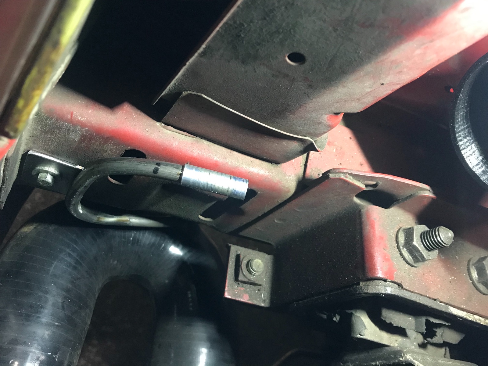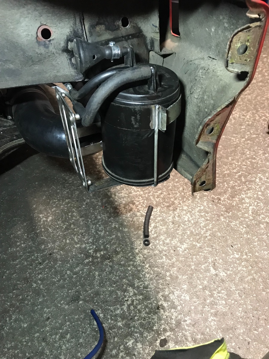 Im Motorraum habe ich den Schlauch vom Motor zum Aktivkohlefilter gekürzt und an das Rohr montiert.