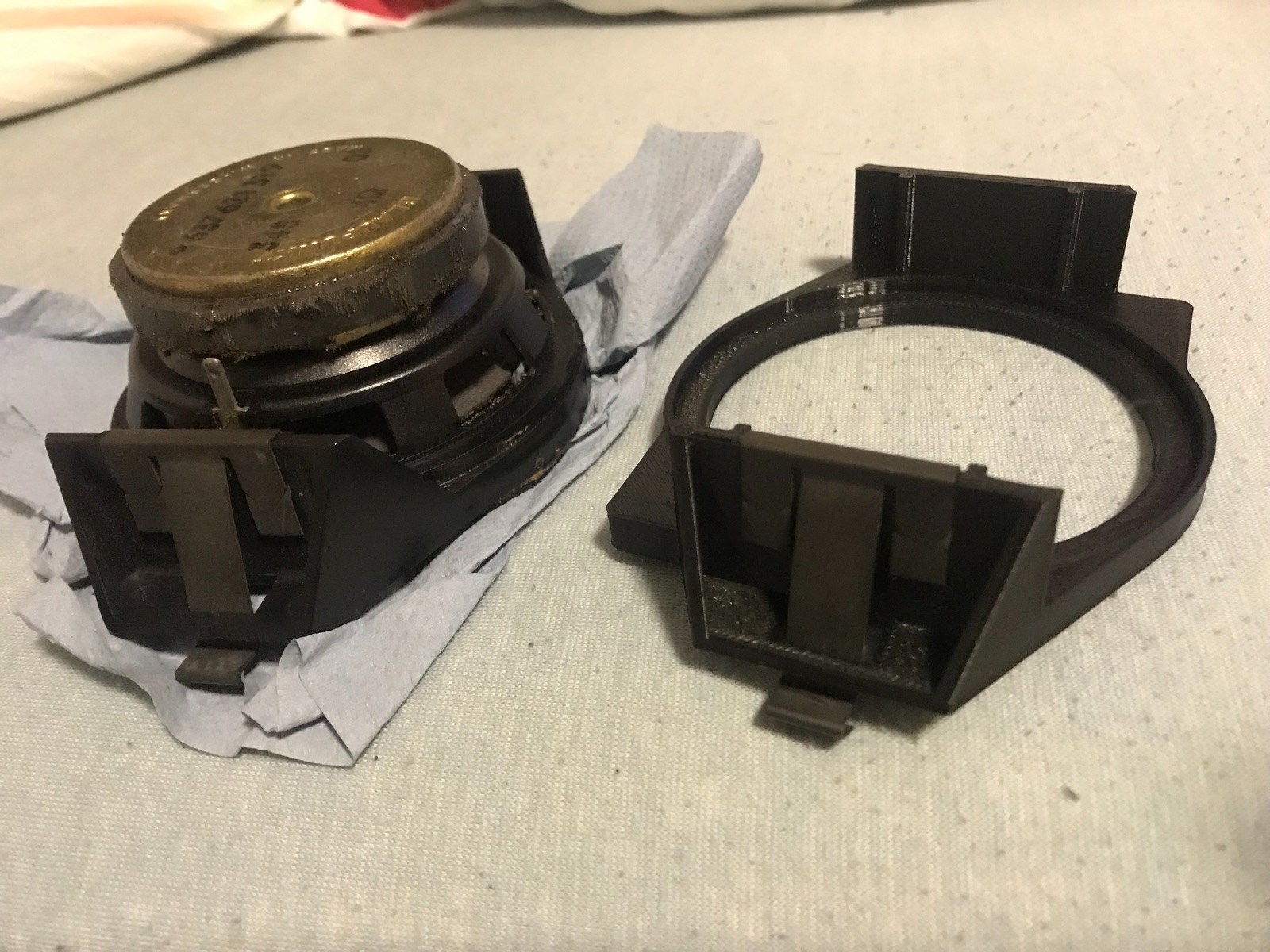 Der Lautsprecher ansich ist ein Teil mit der Befestigung unterm Armaturenbrett. Also habe ich mir eine Original genommen.