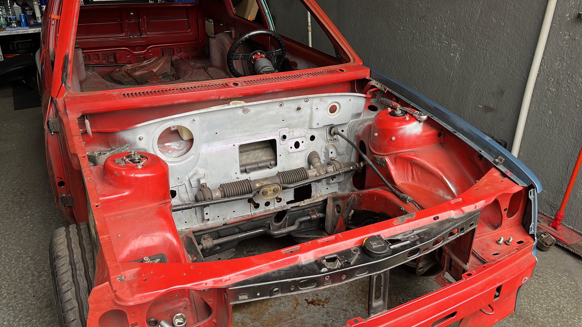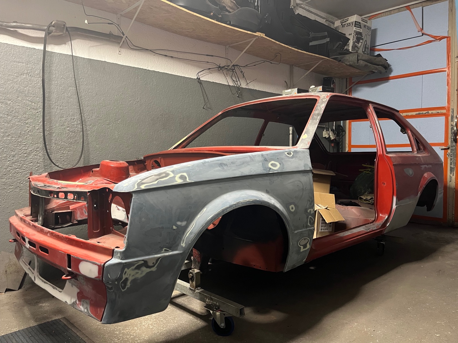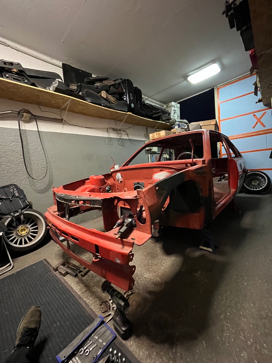 Kadett ist grad komplett auseinander gebaut. Bereite es auf die Lackierung vor