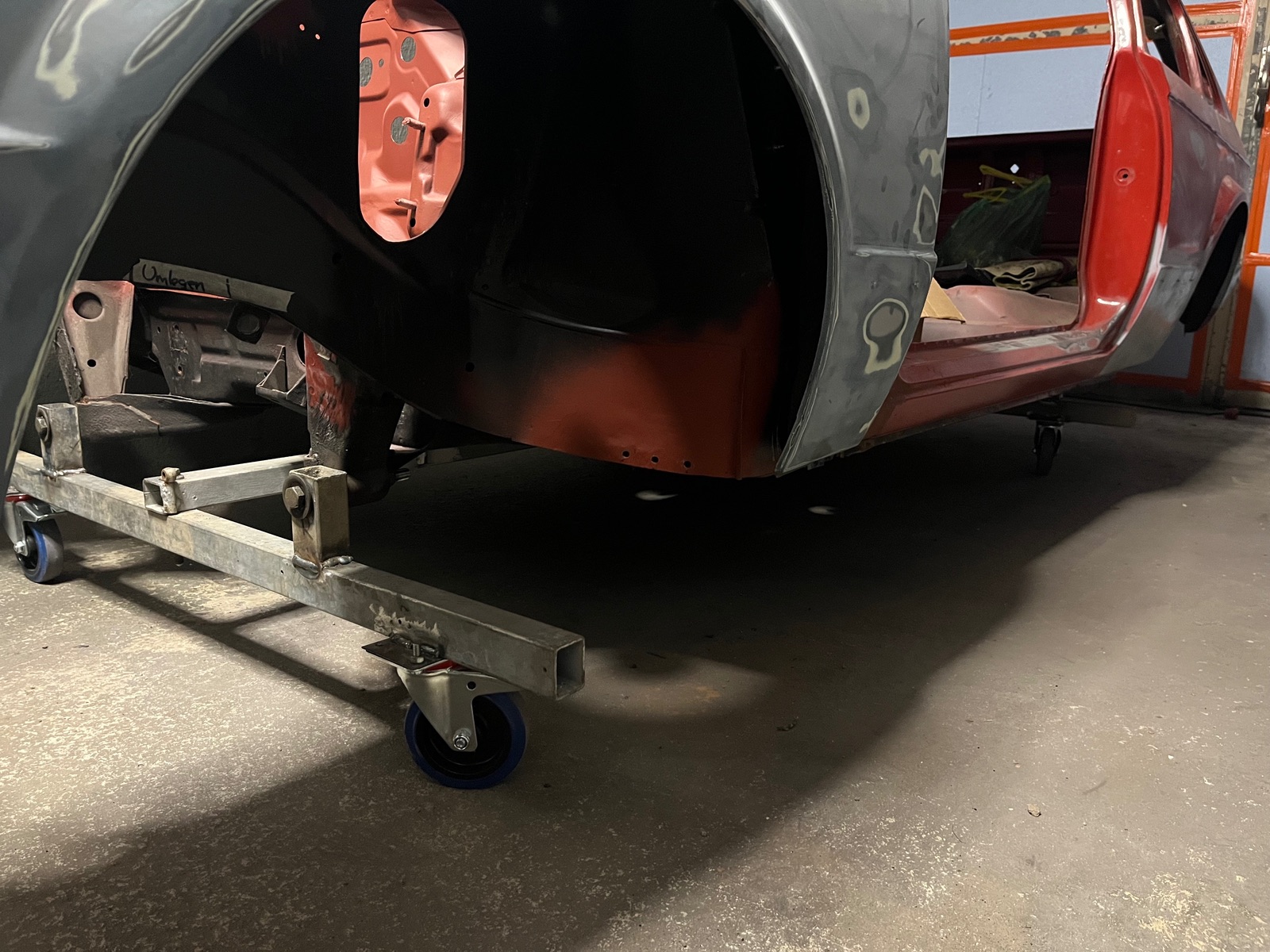 habe einen Transporgestell gebaut. Ist echt praktisch. Da ich nicht soviel platz in der Garage habe. Kann es jetzt bequemer zu seite schieben. Habe dadurch viel mehr platz zum Arbeiten.