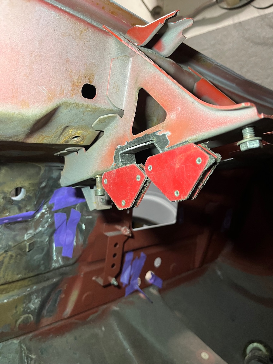 Nachdem die Position passte habe ich den HAlter von hinten grundiert und eingeschweißt.