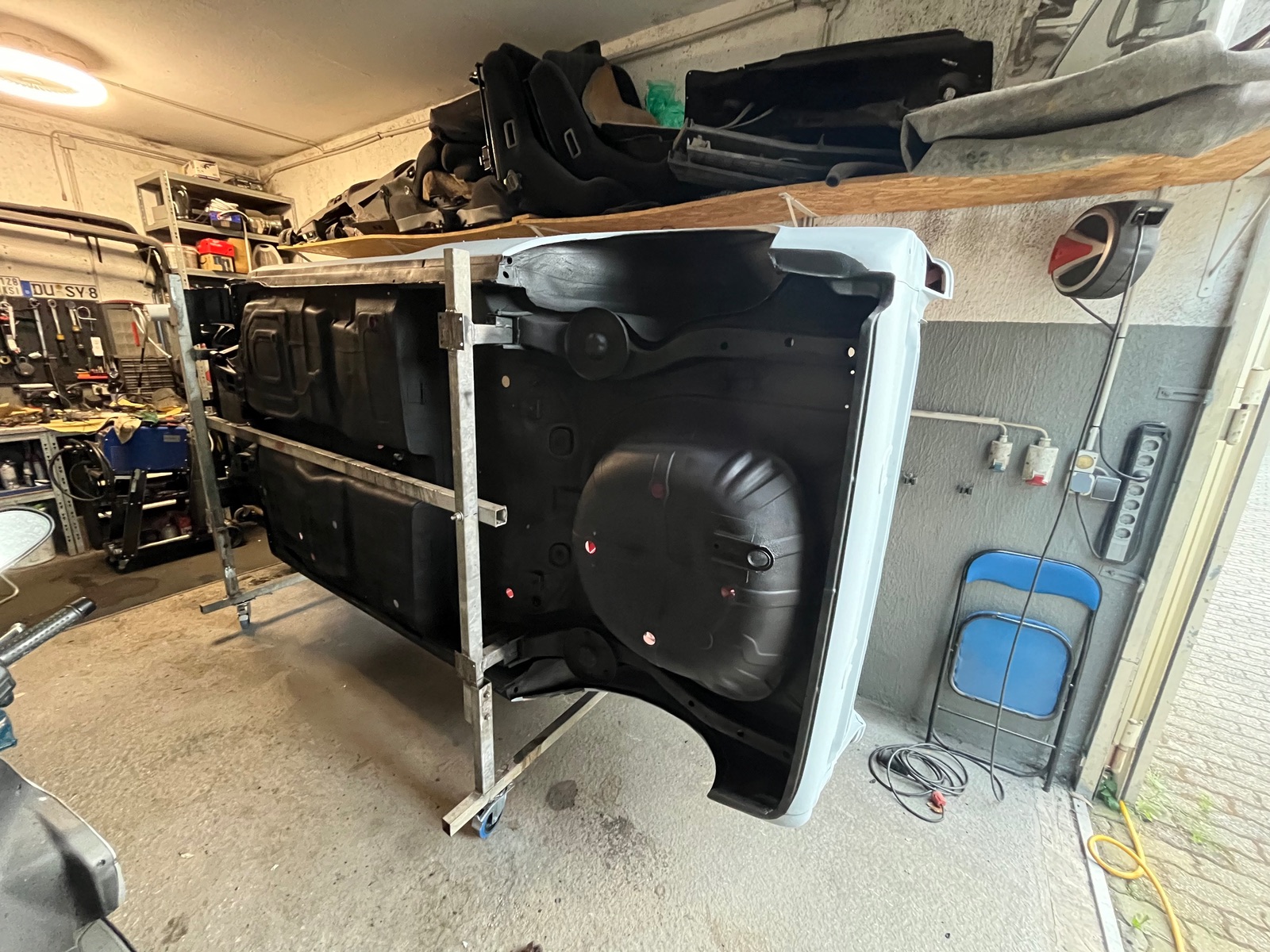 Dieses Gestell wird dann auch zum Kippgestell umgebaut damit ich den Unterboden auch noch machen kann.