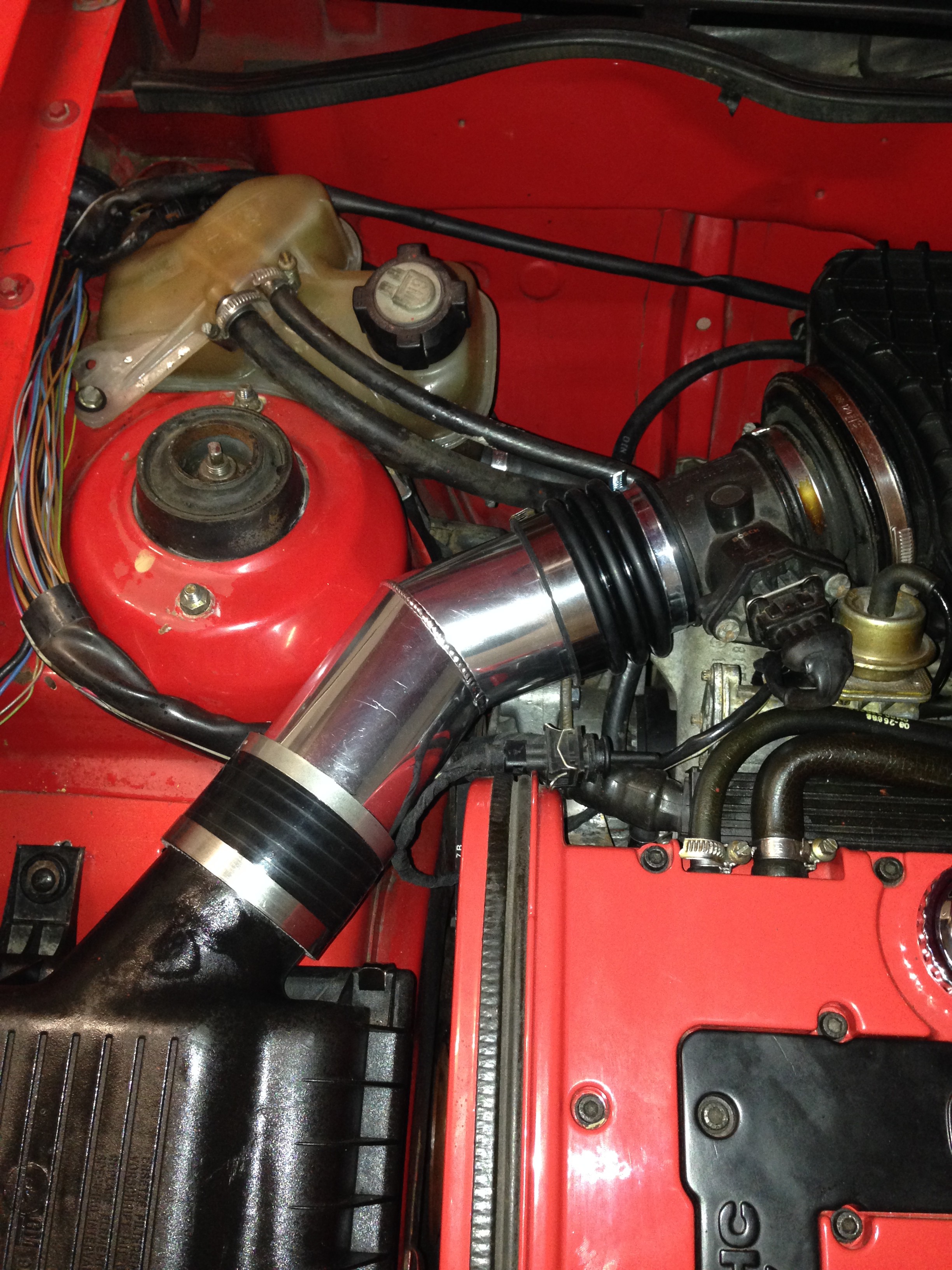 Da das Originale Rot garnicht dazu gepasst hatte.Das Ansaugrohr zwischen lmm und Luftfilterkasten habe ich durch ein "powerrohr" ersetzt.