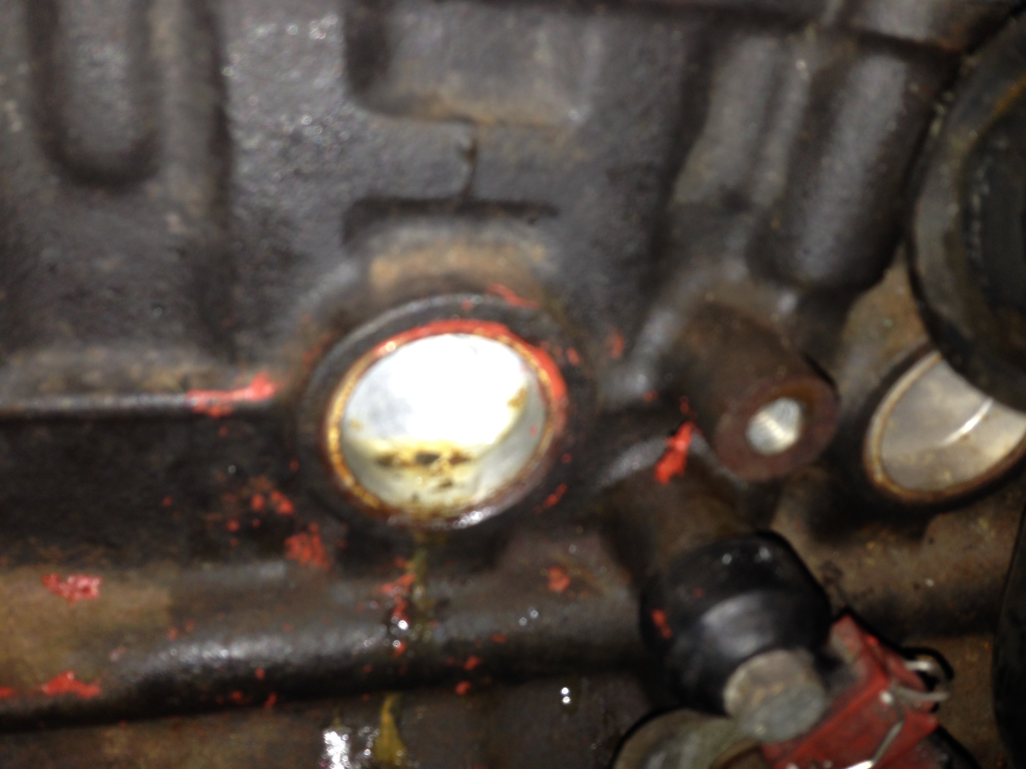 Hab dann beschlossen die Ansaugbrücke abzubauen.Und was sehe ich? ein durchgerosteter Froststopfen.