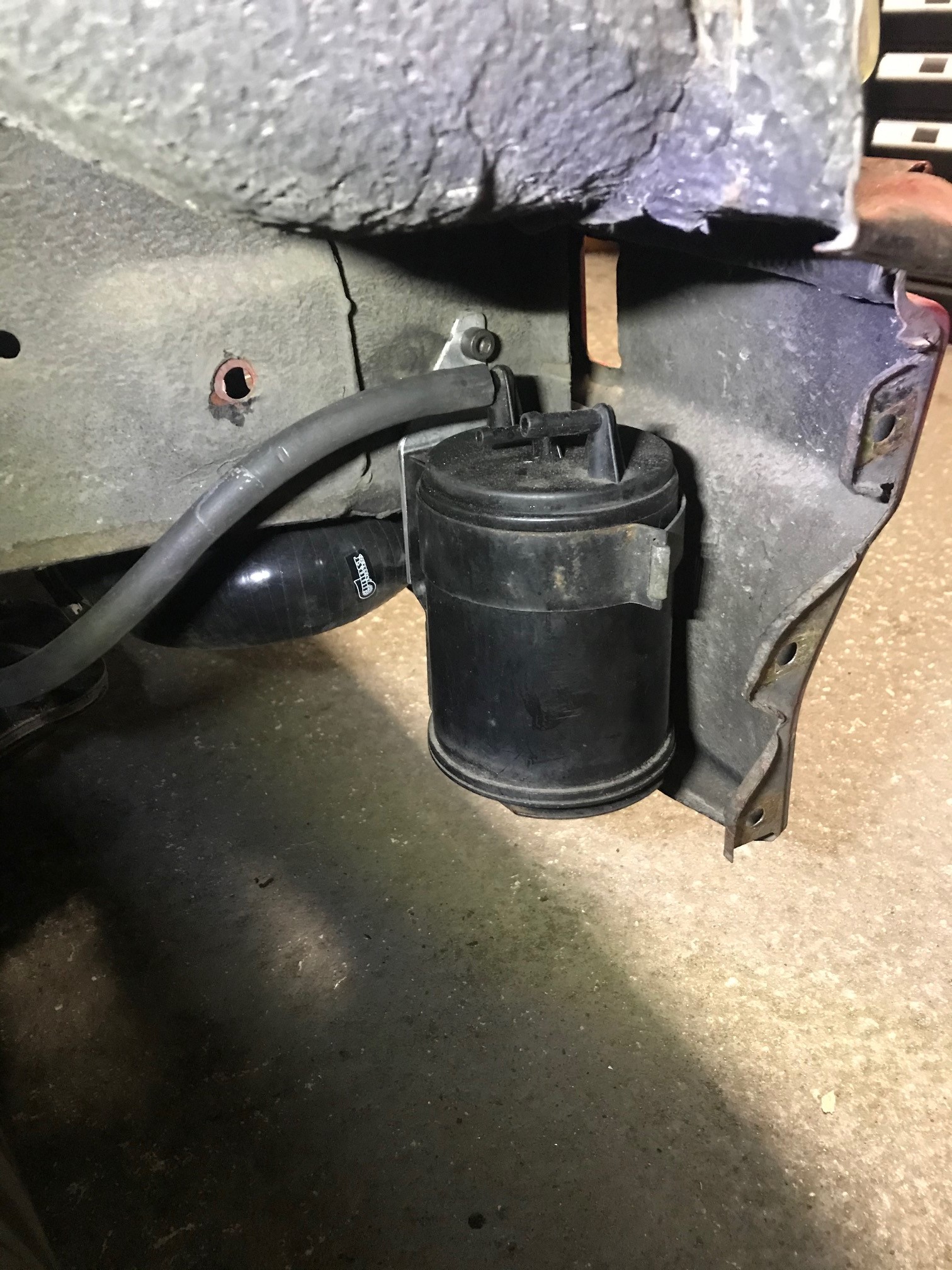 Da ich für die Eintragung des z20let motors einen Aktivkohlefilter brauche habe ich mir eins vom astra f besorgt gehabt. Lag schon ne lange zeit bei mir rum. Habe einen Halter gebaut womit ich den Aktivkohlefilter an der vorderen Befestigungsschraube der Stoßstange montieren kann. Somit ist dem Reifen nicht im Weg.