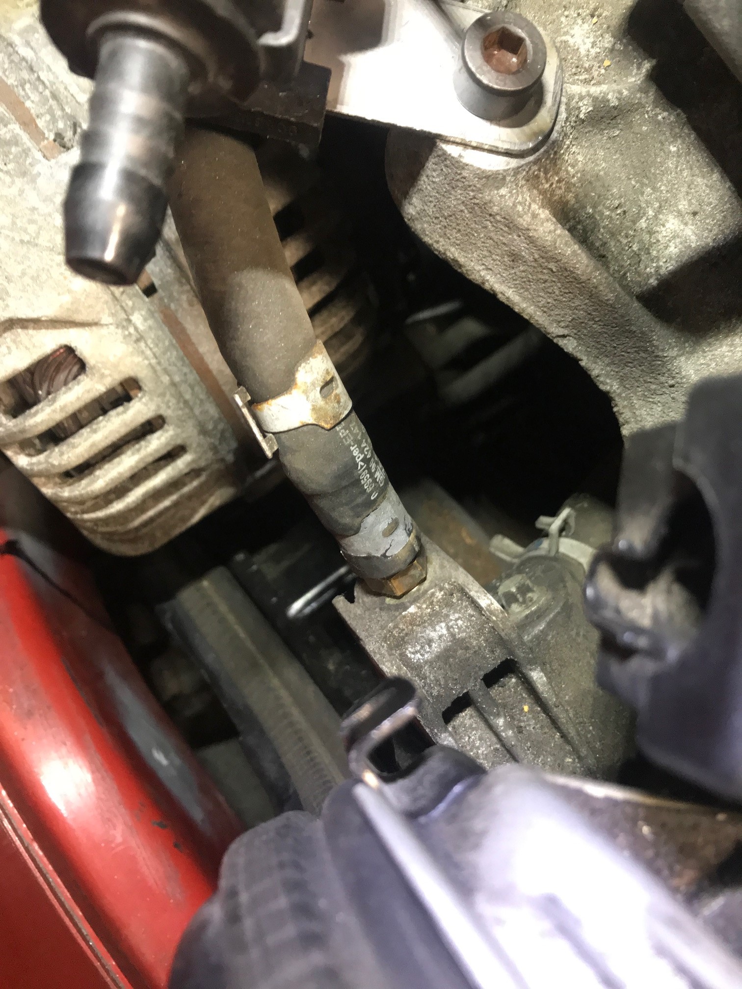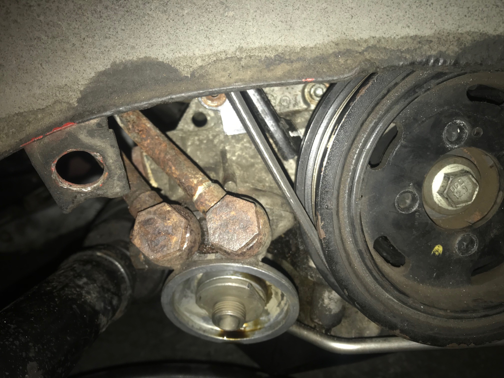 Um mehr platz zu schaffen, damit der Riemen nicht schleift musste ich das Ölfiltergehäuse lösen und verdrehen.